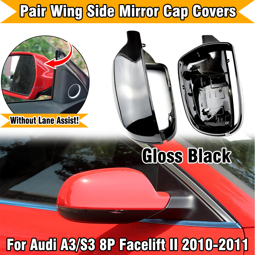 Ersatz-Außenspiegelkappen in Schwarz Glanz für Audi A3/S3 8P, A4/S4 B8 Facelift (B8.5) und A5/S5 8T Facelift (ohne Spurwechselassistent(Side Assist))