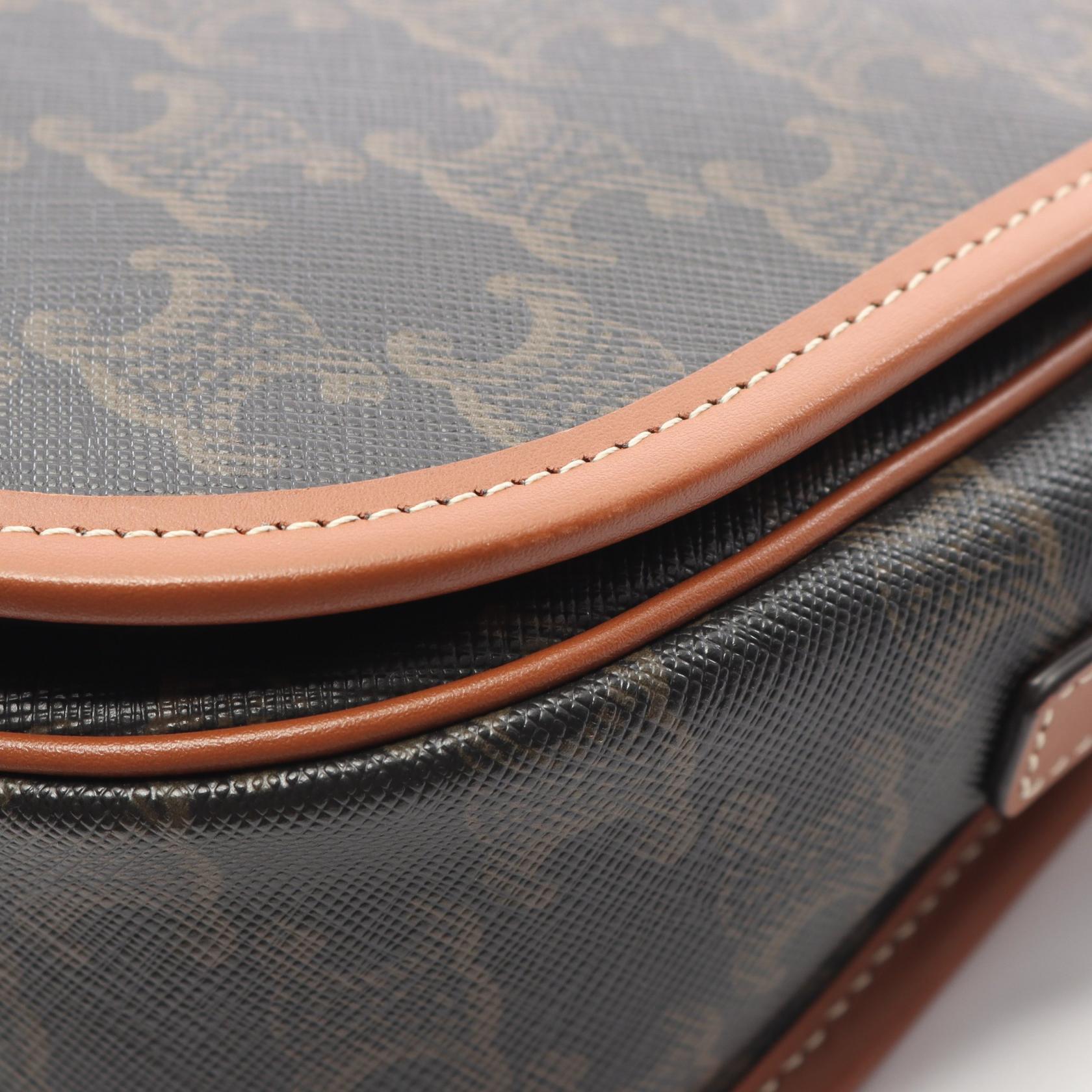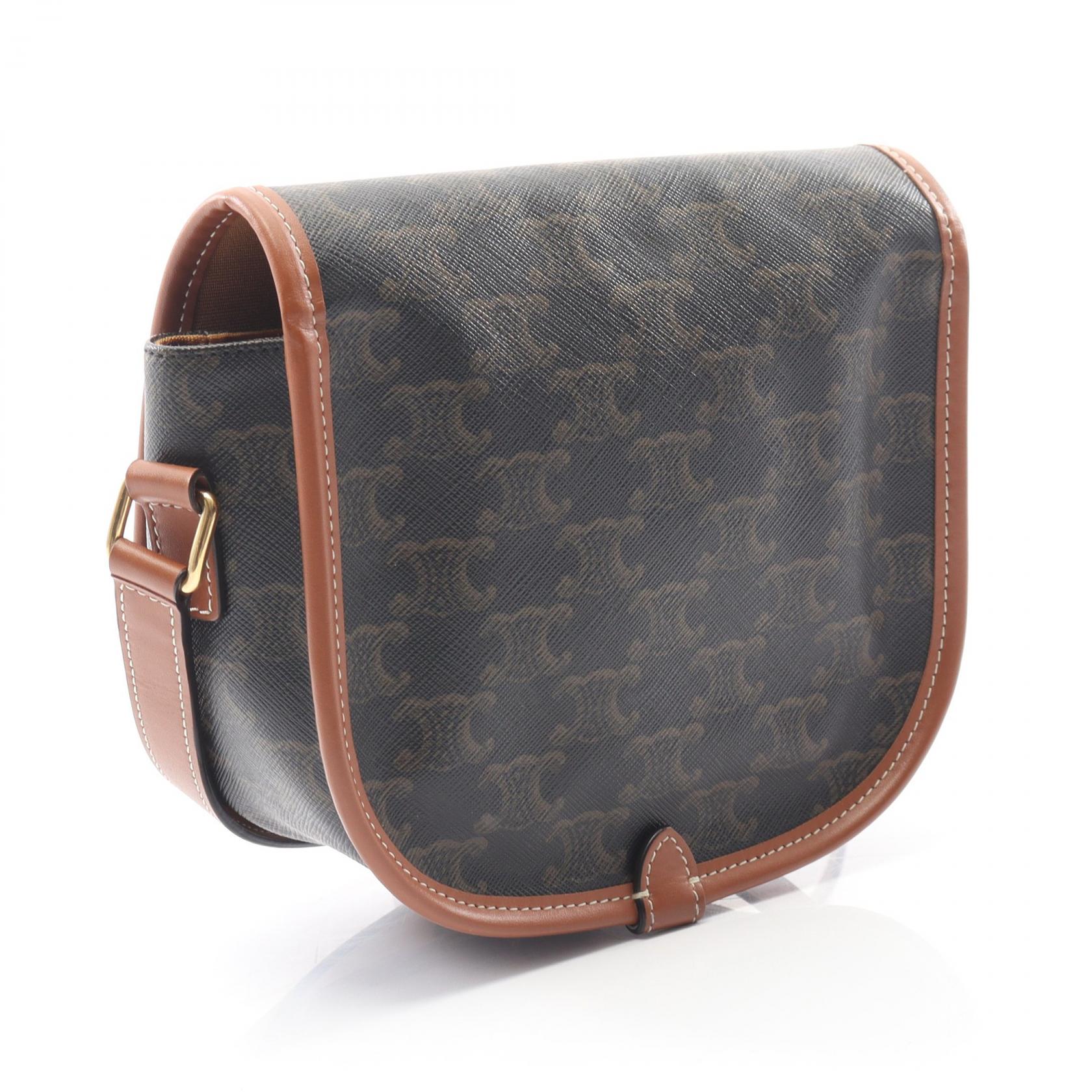| Item Name | CELINE Folco Medium Triomphe Shoulder Bag canvas leather Black Brown Used Women |