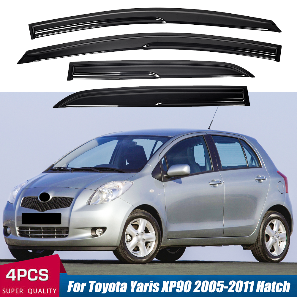 4Pcs Smoked/Tinted Tape-on Mugen-Style Wind Deflector, Rain Guard, Window Visor, Vent Deflector For Toyota Yaris XP90 2005-2011 Hatchback 5-Door