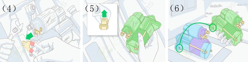 (6).Compare the new starter to the old one. Slide the starter into place.