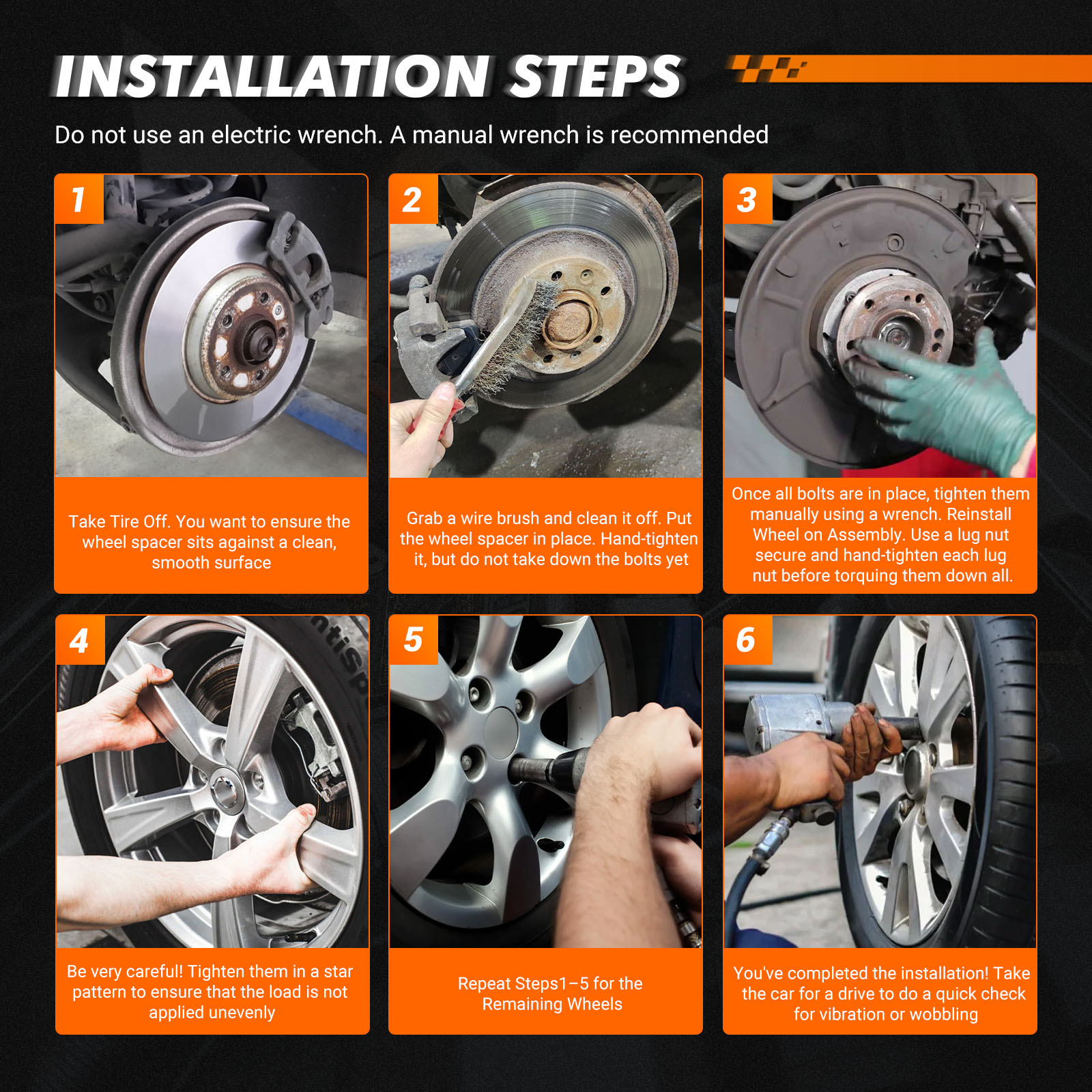 - Secure the wheel spacer using the appropriate studs and torque wrench, as specified by the vehicle's manual.