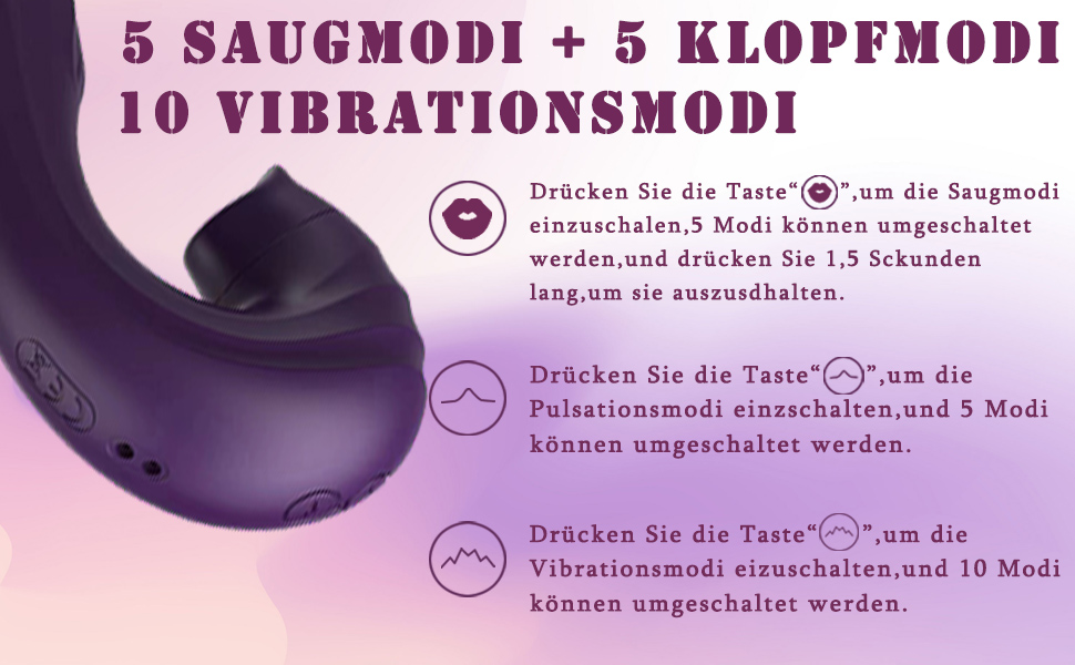 Der Erwachsenenvibrator ist U-förmig, wobei eine Hälfte für die Penetration ausgelegt ist und die andere Hälfte auf Ihrer Klitoris ausgerichtet ist. Clitoris Saugbibrator verfügt Für intensive G -Spot -Stimulation.