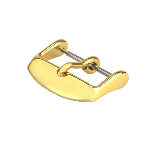 This listing features a 26mm stainless steel heavy buckle clasp finished in a shiny silver-tone with a gold color. The buckle is compatible with leather, rubber, and nylon straps. Included are one stainless steel heavy buckle in gold color and the necessary spring bars.