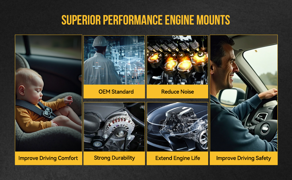- Includes four essential motor mounts: Front Right Motor Mount, Torque Strut Front Lower Mount, Torque Strut Front Upper Mount, and Auto-Transmission Mount.