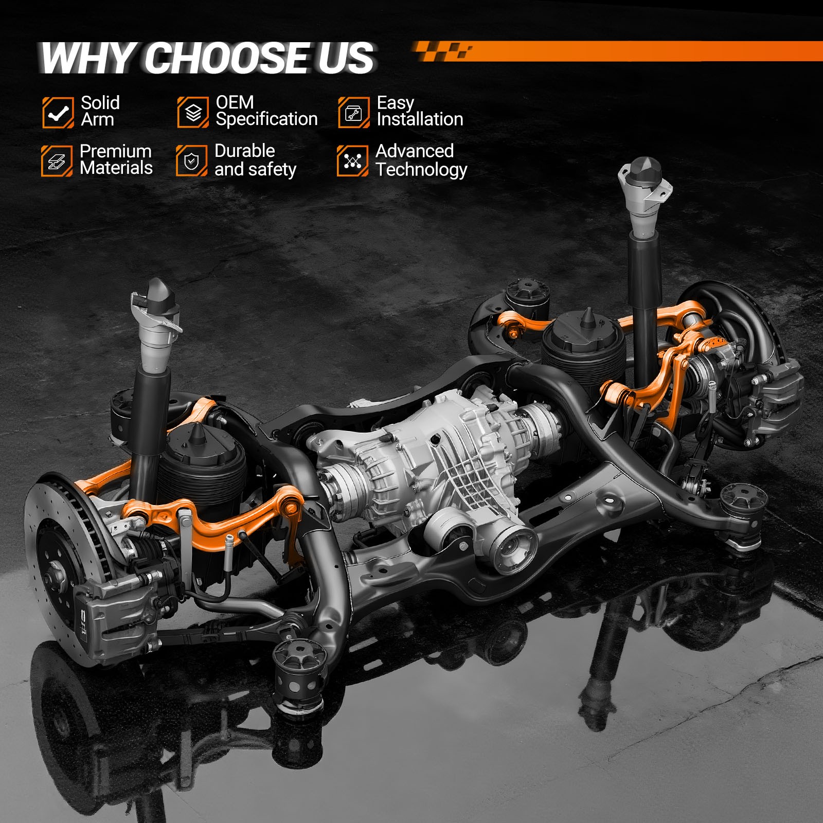 1.The control arms are built using advanced processes and premium coatings, to maximize their durability and corrosion resistance.