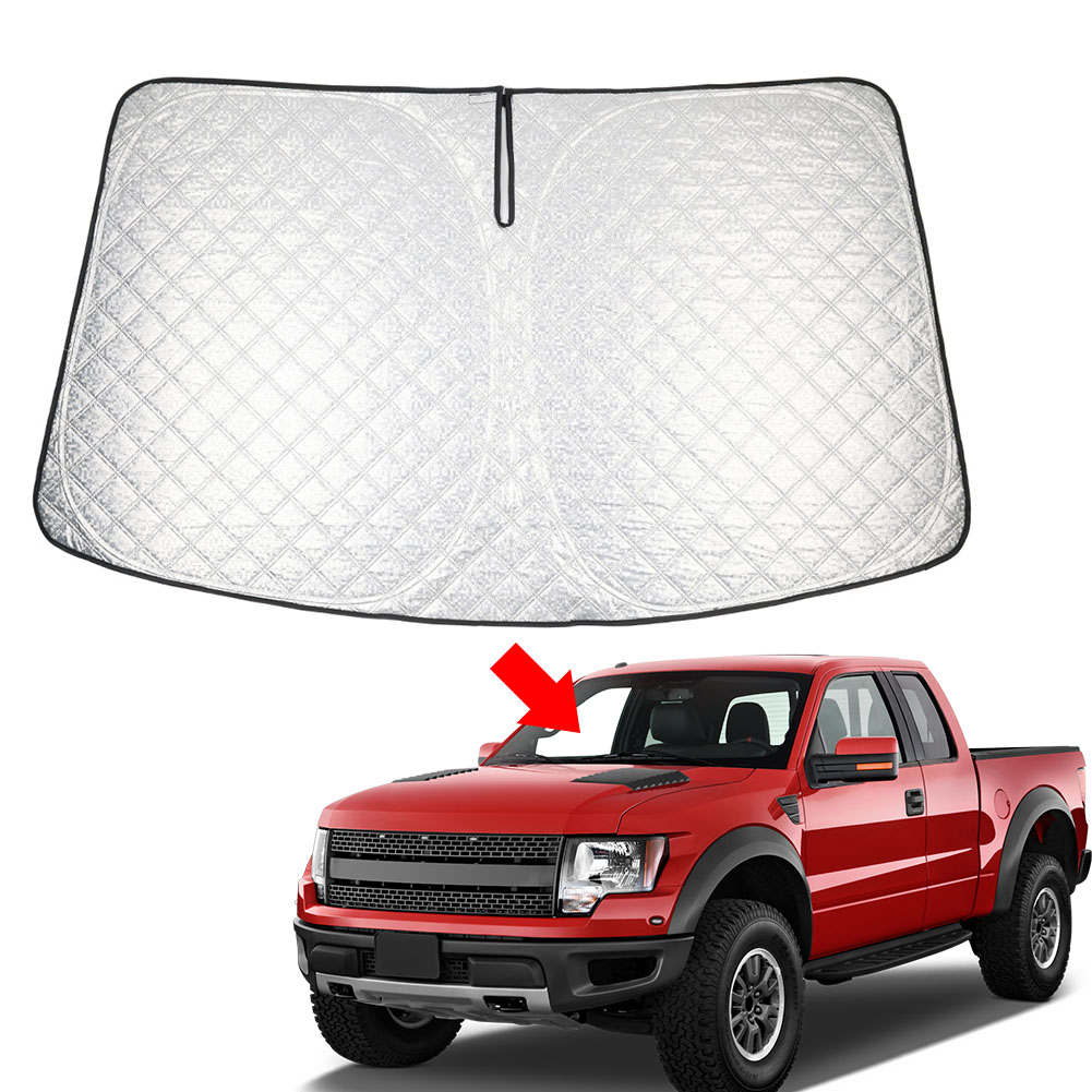 Car Foldable Windshield Sun Shade Visor Protector Custom For Ford F150 2009-2014 Features: 1. Made of 6 layers of premium thickened heat insulation material, including high temperature reflective layer, constant temperature heat absorbing layer, seamless transition layer, fireproof spunlace, nano heat insulation layer and fast cooling layer, it significantly improves sun shading. 2. This is designed specifically for Ford F150 with high precision, fits ideally on the windshield of the car without any gaps and it looks neat and tidy visually. 3. Install and fold in seconds without any suction cups or adhesives. With elastic memory steel wire, never deform, easy to unfold and store. 4. Your AC can cool faster and easier, helping save energy and gas while making your drive much more comfortable and enjoyable. 5. It can also protect your car's interior from sun damage, reducing heat to prevent fading, cracking, and aging. Specification: Condition: Aftermarket New Type: Car Windshield Sun Shade Material: Aluminum Coating, Composite Cotton & Composite Oxford Cloth Color: Black Placement on Vehicle: Front Fitment: For Ford F150 2009-2014 Package Included: 1 Pcs Car Window Sun Shade Notes: 1. No installation instruction included. 2. Please kindly confirm the fitment and details. 3. Please allow slight manual measurement deviation for the data. 4. Due to the lighting and screen settings, the real color may slightly different from the picture.