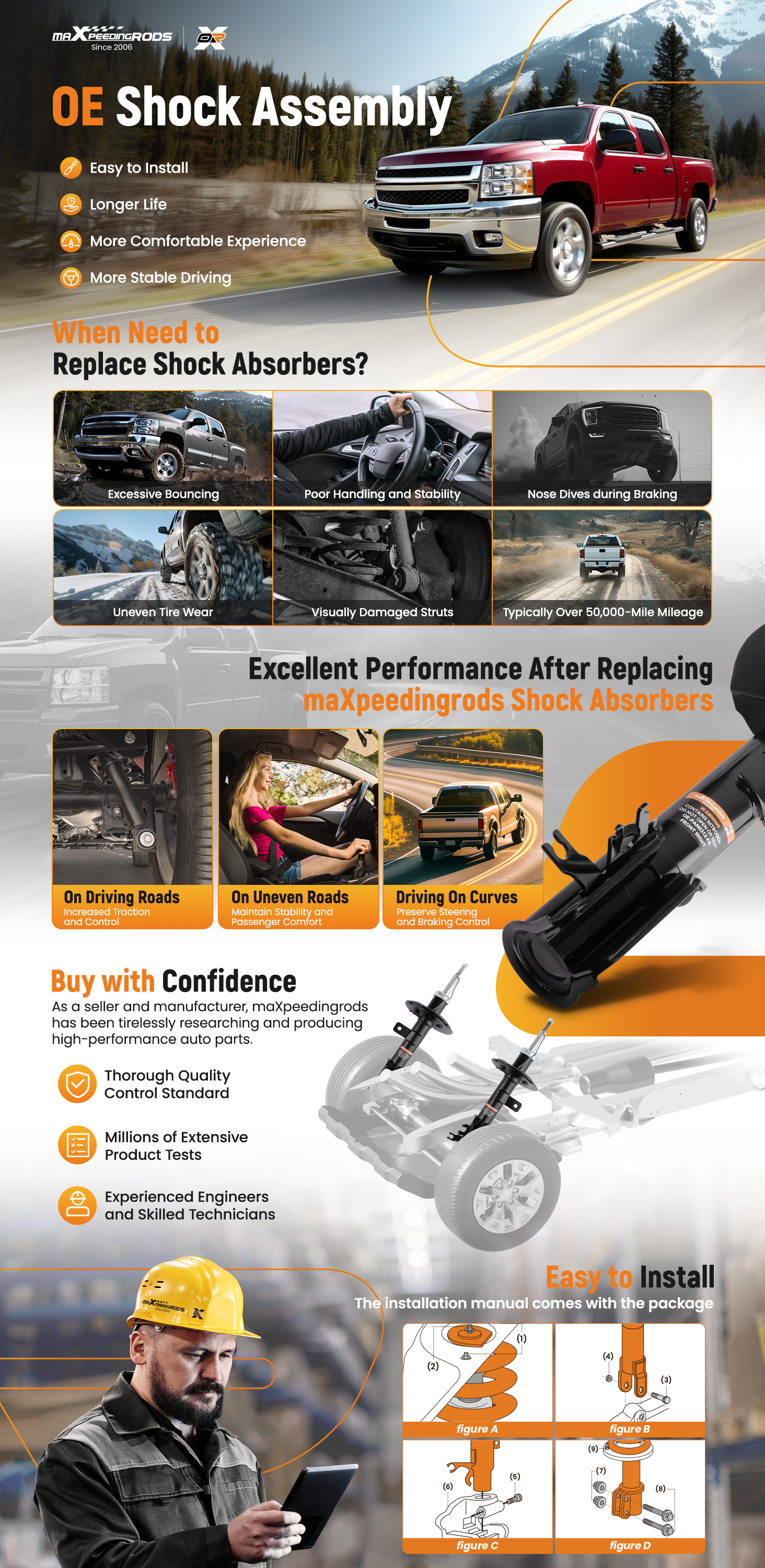 5. Die Installationsabmessungen werden streng kontrolliert, um die Kompatibilität zu gewährleisten. Die Verlängerung und die Kompressionslänge der Feder sind im Einklang mit der Stammstrebe und gewährleisten den gleichen Hubgang wie die ursprüngliche Fabrik.