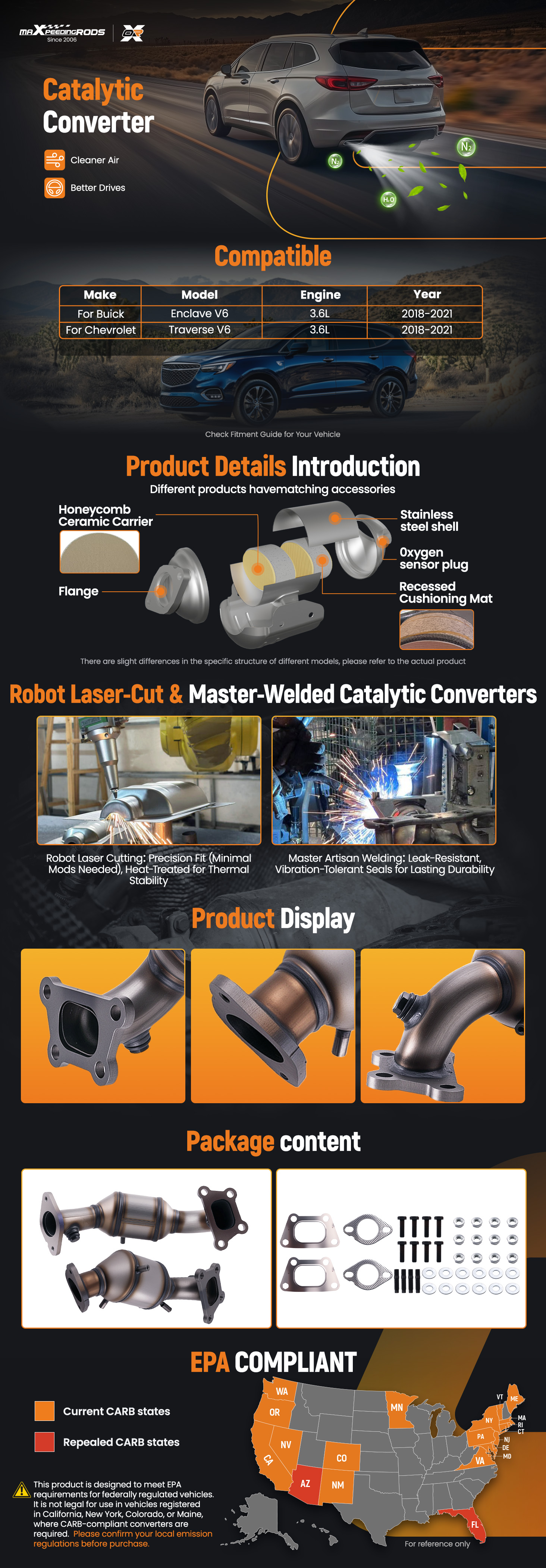 1.Emissions Compliance: Meets EPA (Federal) standards only. Not CARB compliant – not for vehicles registered in CA, NY, ME, CO.Please confirm your local emission regulations before purchase.
