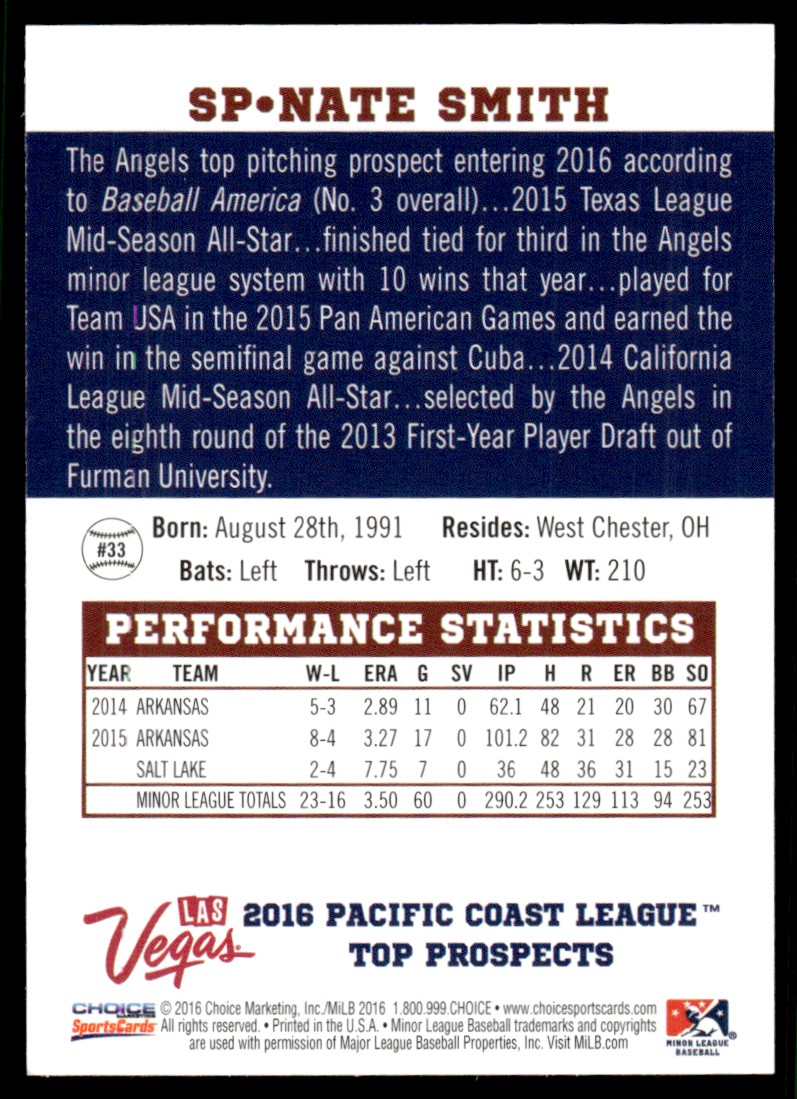 2016 Nate Smith Choice Minor League Rookie Card PCL Top Prospects