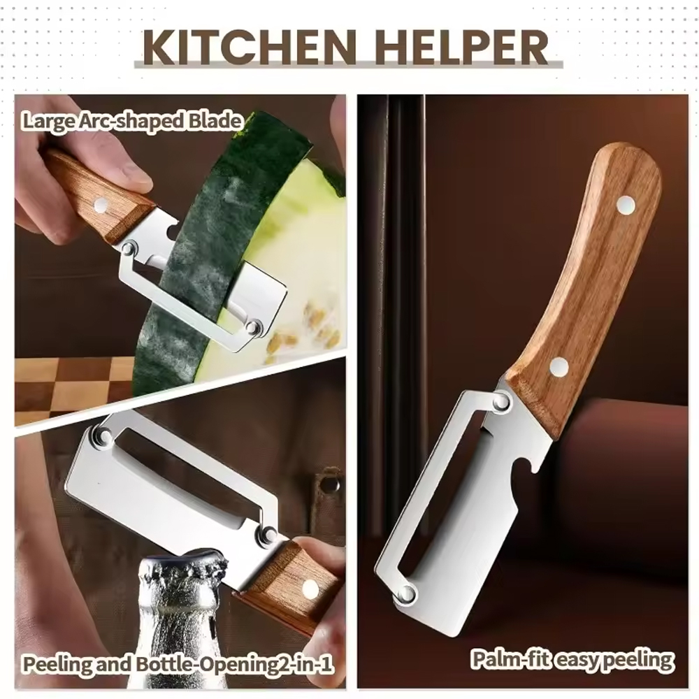 This innovative peeler combines a precision vegetable blade with a built‑in metal bottle opener—handling both peeling and opening tasks in one sleek tool, making daily prep faster and more convenient.