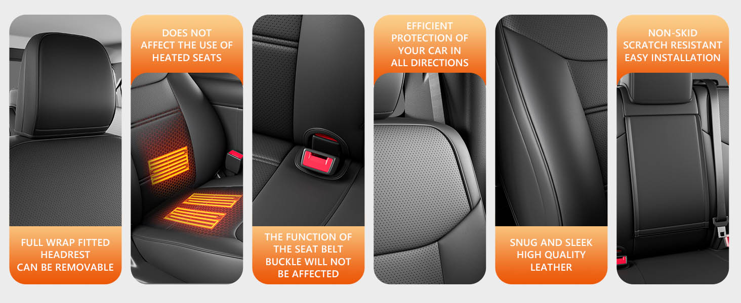 2. High-Quality Material:Our seat protectors are made of high quality PU leather.They are waterproof, wear-resistant and odorless.They can be cleaned with water and a towel.They are comfortable to the touch and have good breathability,so they will not affect the normal heating function of the seat.