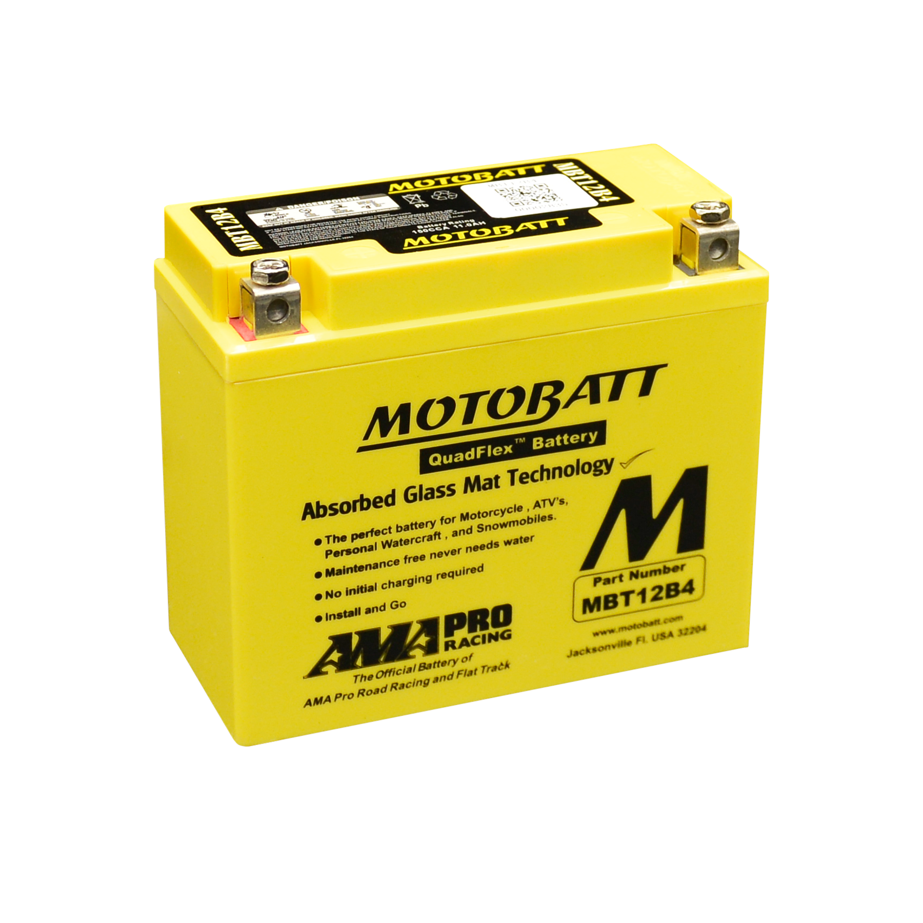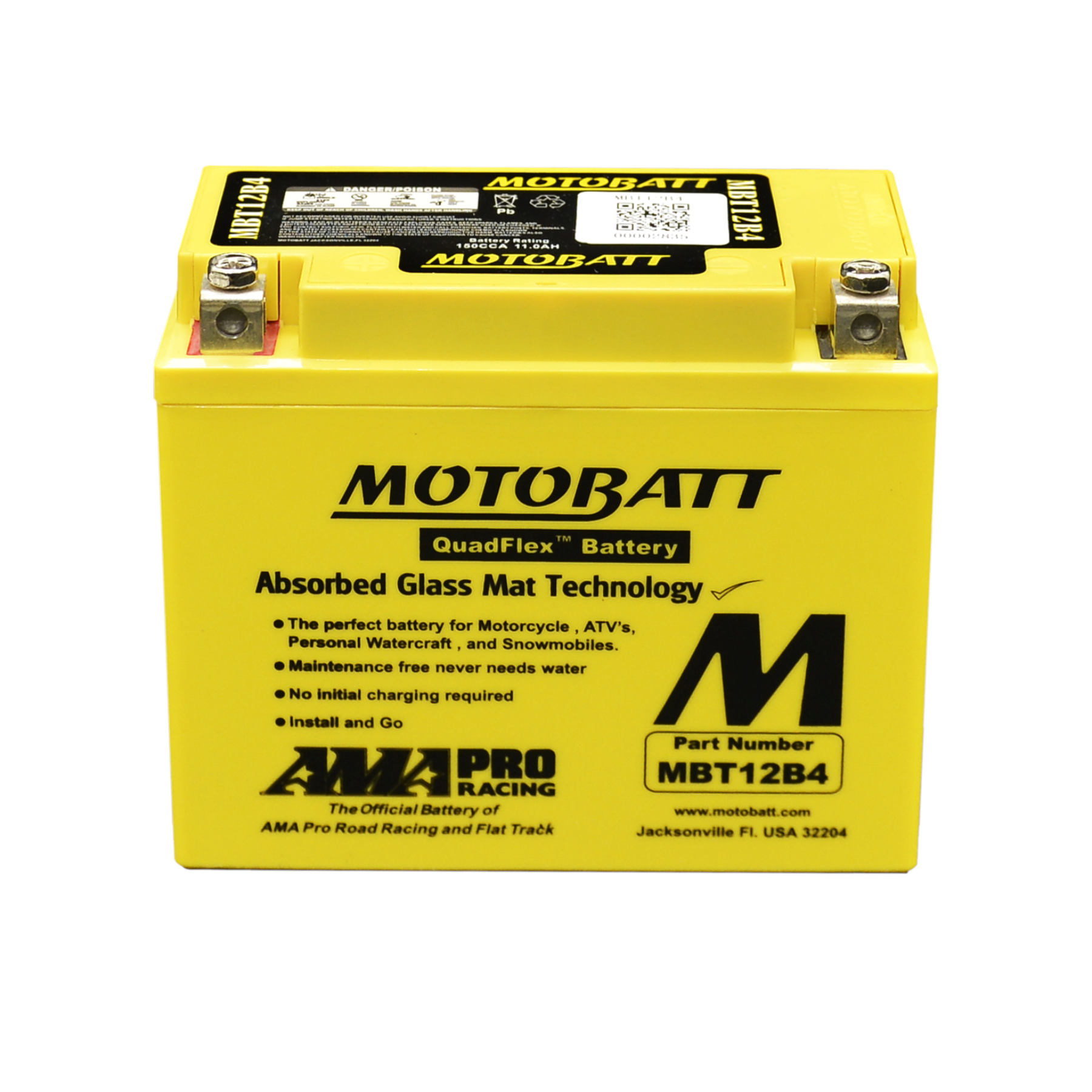 The first and unique 4 terminal system, proposes the best balance between CCA and Amp hour capacity. Due to utilizing the wasted space inside a standard battery case, Motobatt maximizes the dimensions of the plates internally. Additionally the plate grids are made thicker, and that with the additional density of the pasting improves the Amp Hour capacity, durability and Cold cranking Amps. Motobatt has completely changed the Powersport market by improving an old design.