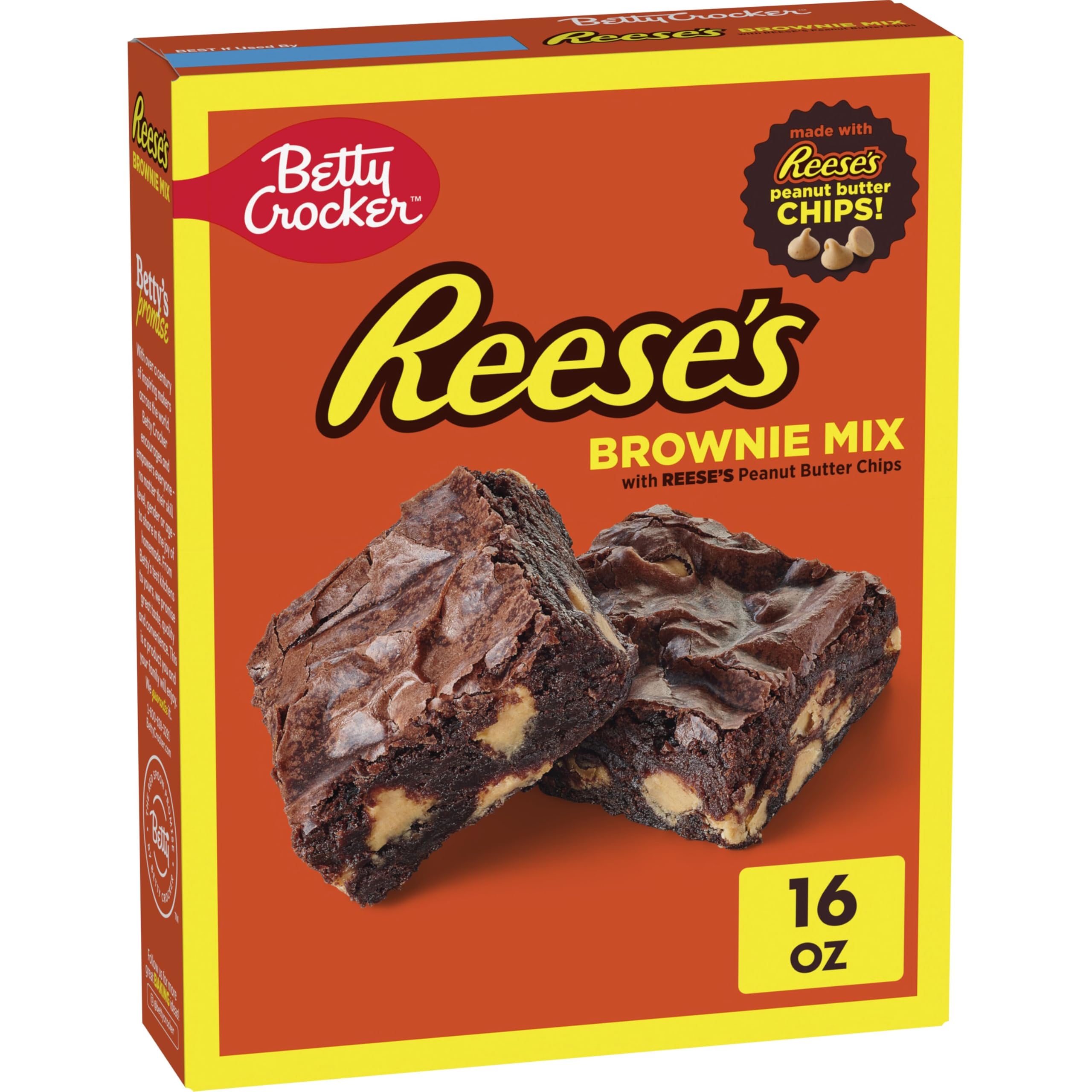 Betty is using her baking expertise to bring one of the most iconic flavors to life in this new REESE'S Peanut Butter Premium Brownie Mix filled with REESE'S Peanut Butter Chips. There are lots of brownie mixes out there, but only Betty Crocker is giving you brownie mix made with REESE'S Peanut Butter Chips, with that recognizable flavor that everyone loves. Great for birthday parties, office treats or anytime snacks, this brownie mix makes your peanut butter dreams come true. For more than a century, Betty Crocker has been a popular creator of easy, delicious recipes. Today, the Betty Crocker kitchen is still providing convenient, tasty dessert mixes, frostings, and convenient meal options and side dishes.