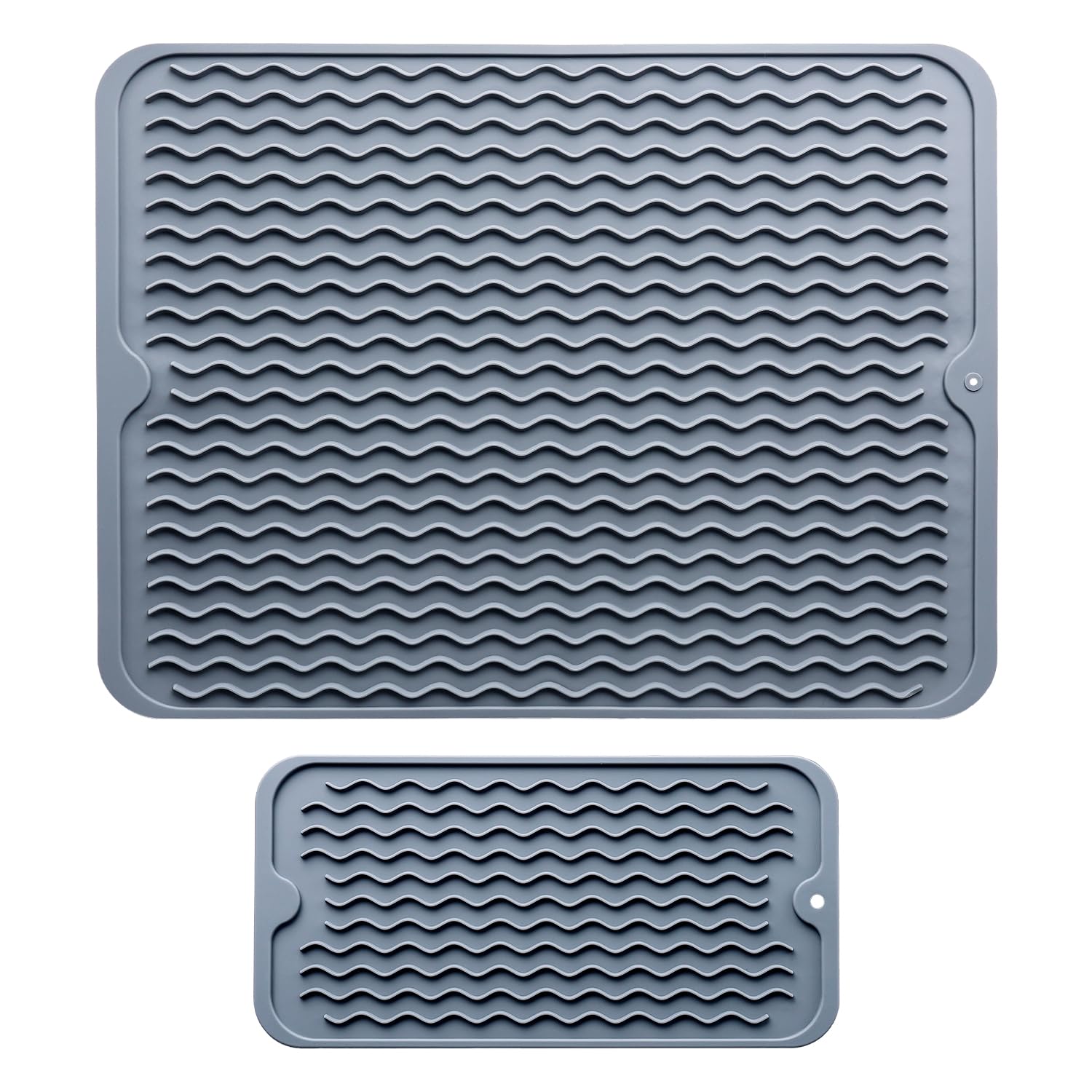 Silicone Dish Drying Mat - 2 Packs of Non-Slip GREY DISH MAT, Gray