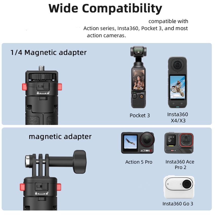 l Compatible with a variety of sports cameras, such as Action 5 Pro, Insta360 Go 3S, Pocket 3, cell phones and so on