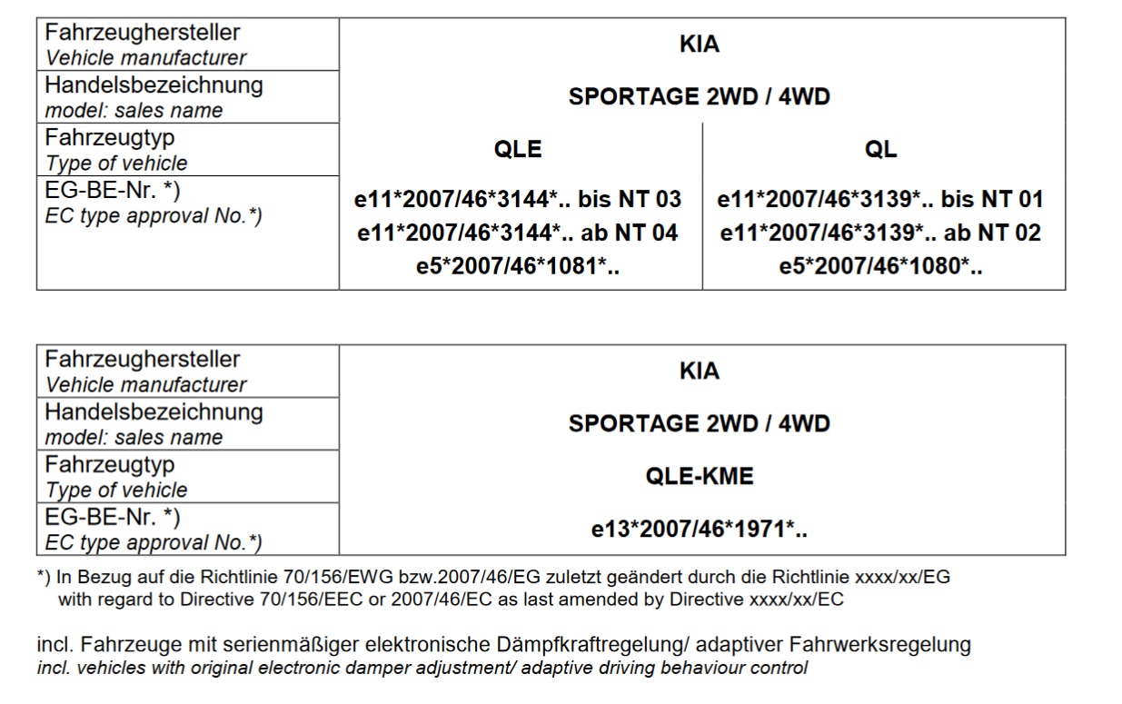 incl. Fahrzeuge mit serienmäßiger elektronischer Dämpfkraftregelung/ adaptiver Fahrwerksregelung