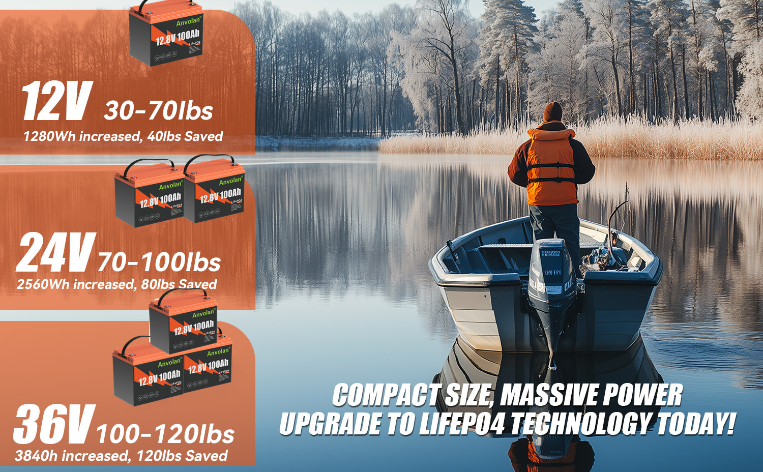 Ideal als Ersatz für Bleiakkus: Ausgestattet mit EV A+ Grade LiFePO4-Zellen bietet der Anvolan 12V 100Ah MAX Lithium-Akku eine deutlich höhere Energiedichte und Qualität. Mit einer Lebensdauer von bis zu 10 Jahren und über 15.000 Zyklen bei 60 % DOD (über 6.000 Zyklen bei 80 % DOD) hält er rund 30-mal länger als herkömmliche AGM-Batterien, die oft nur 3 Jahre bzw. 300–500 Zyklen erreichen.
