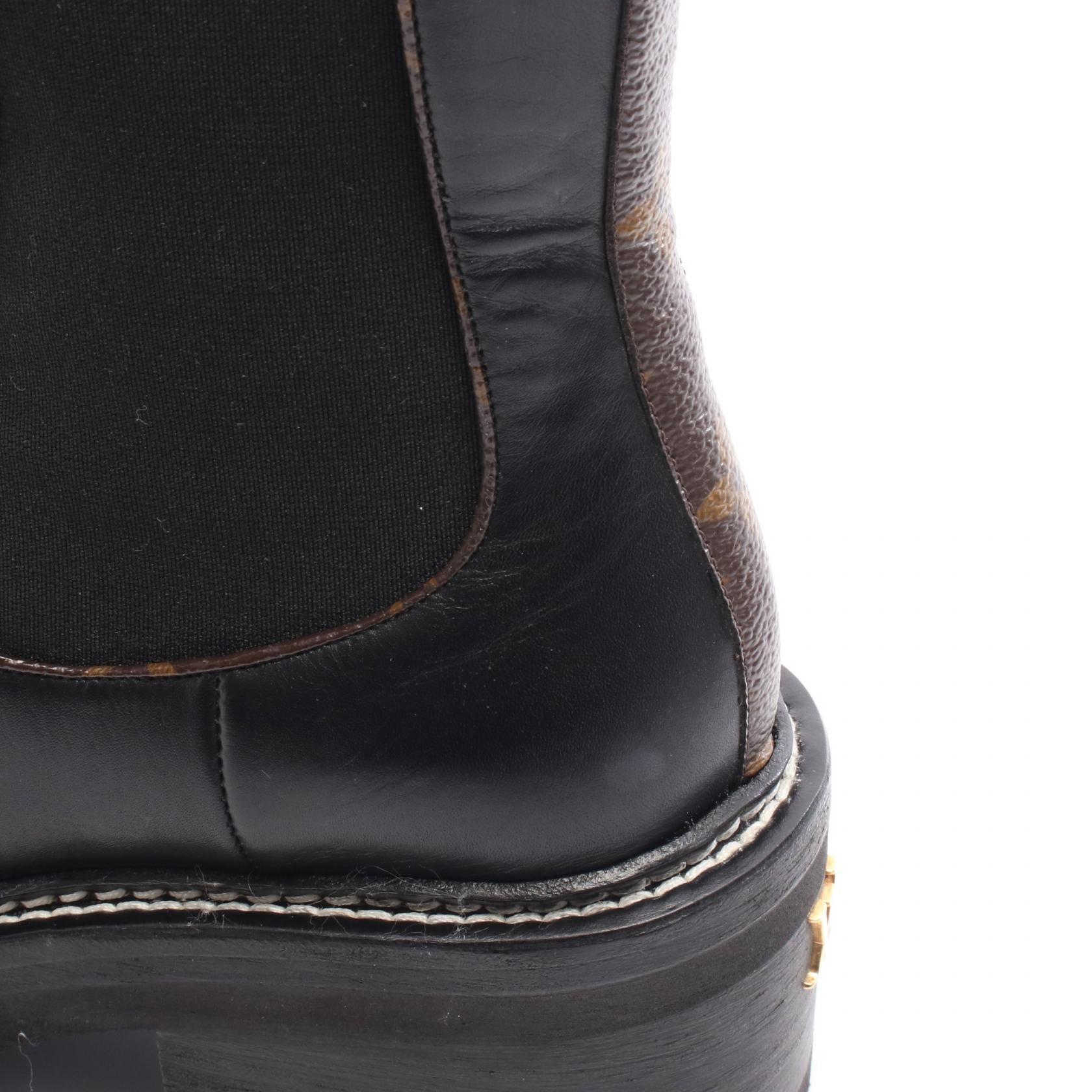 | Item Name | LOUIS VUITTON Bobble Line Monogram boots #38 short leather canvas Black Brown |