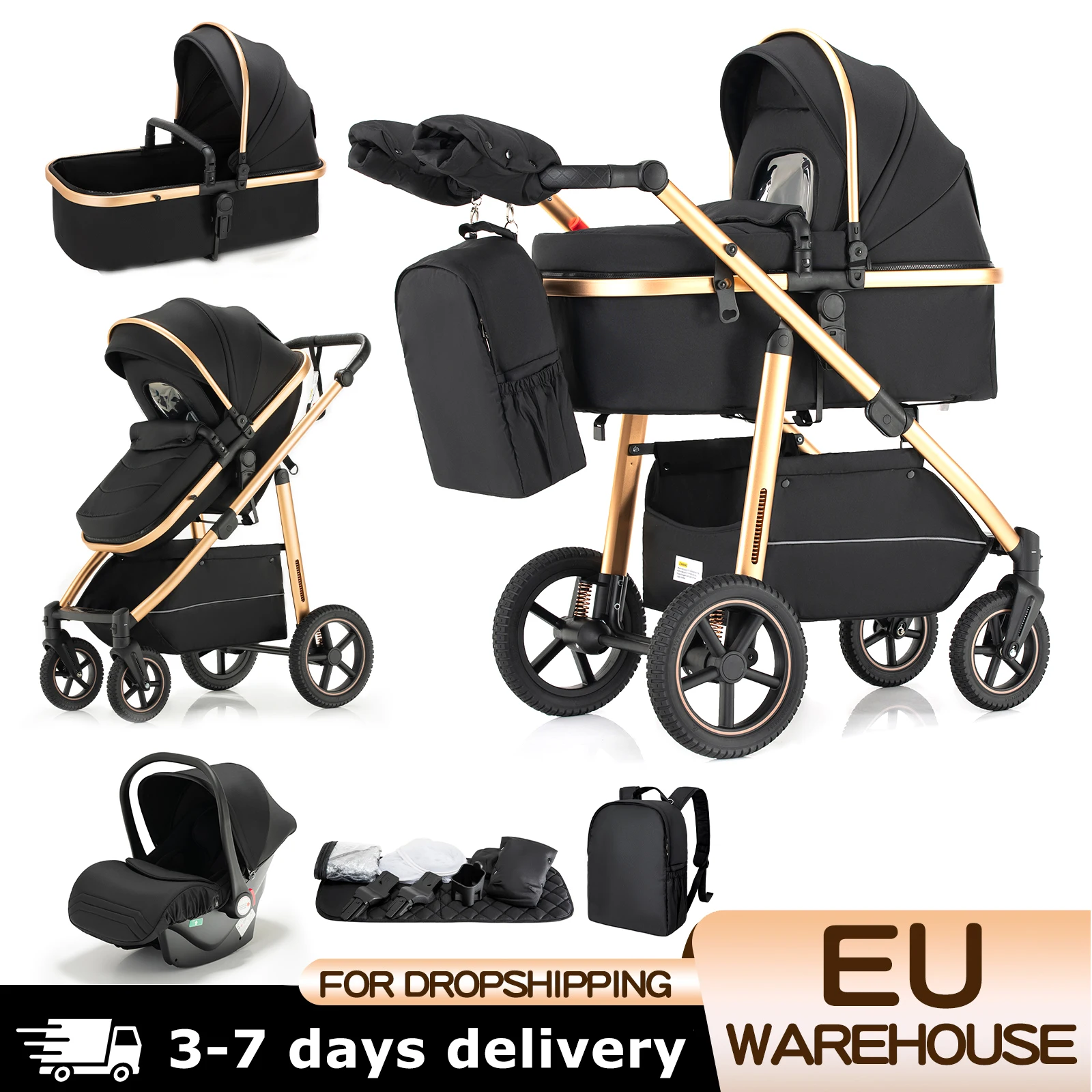 Baby Stroller 3 in 1 Portable Travel Baby Carriage Luxurious Fold Pram High Landscape Aluminum Frame Newborn Infant Stroller