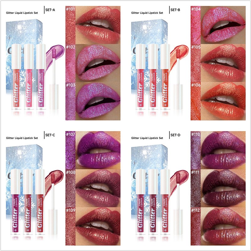 1 Box 3Pcs Lip Gloss Lipgloss Set Glitter Liquid Lipstick Set Shimmer Women