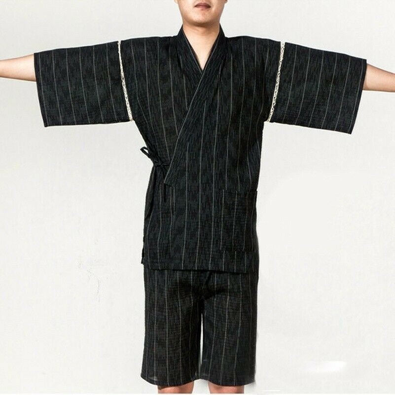 Mens Japanese Pyjama Sets Yukata Jinbei Traditional Kimono Nightwear Stripe
