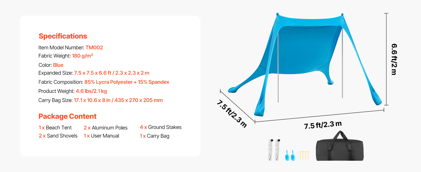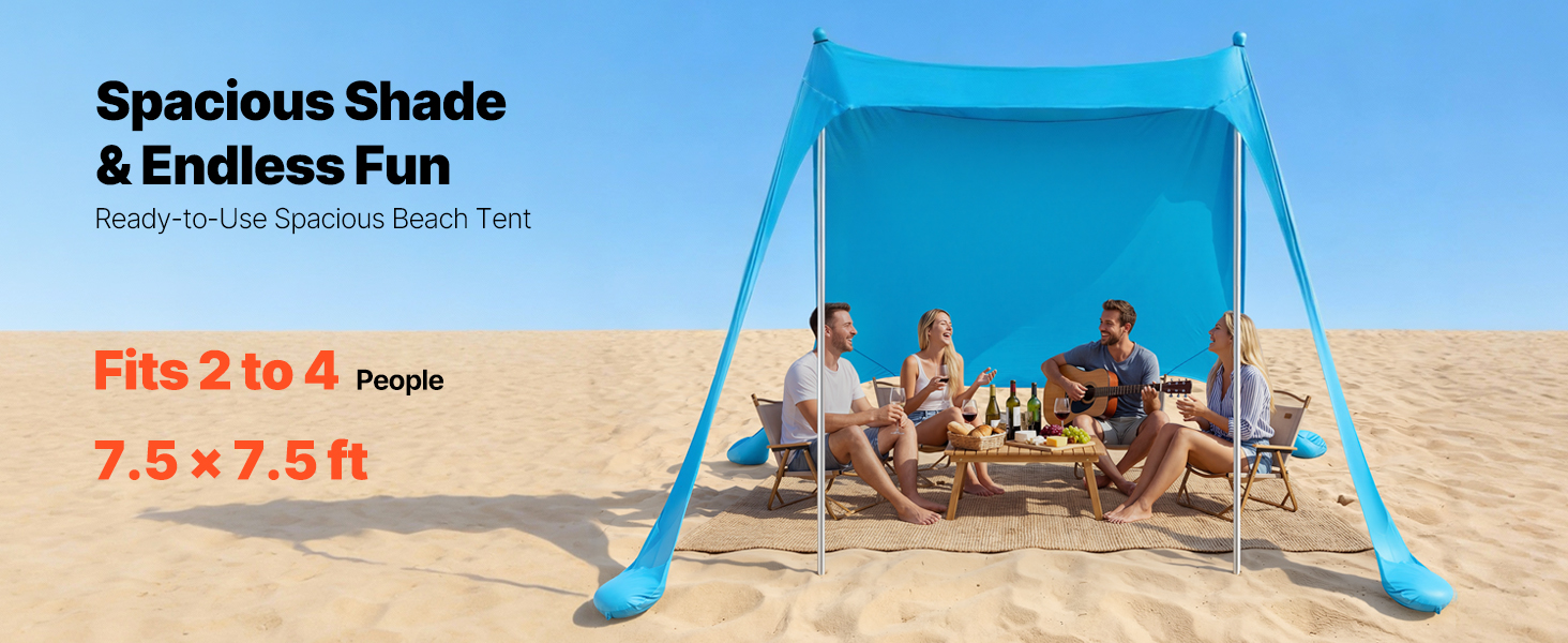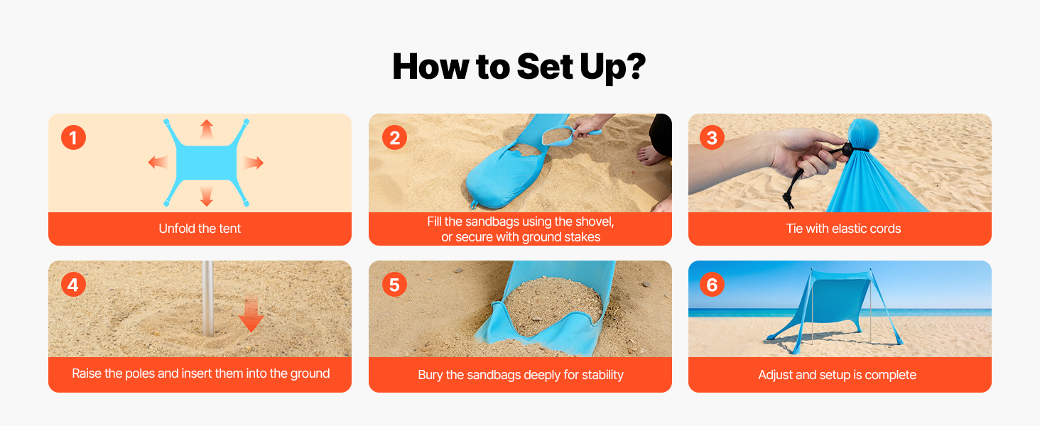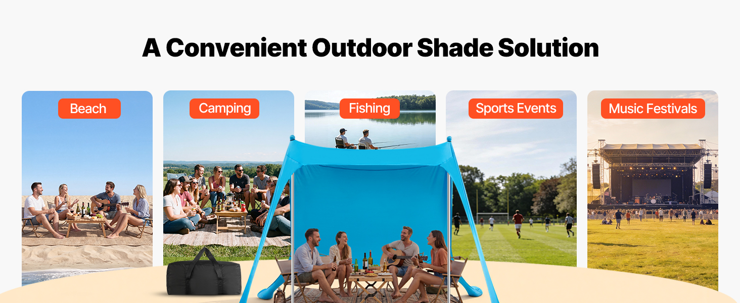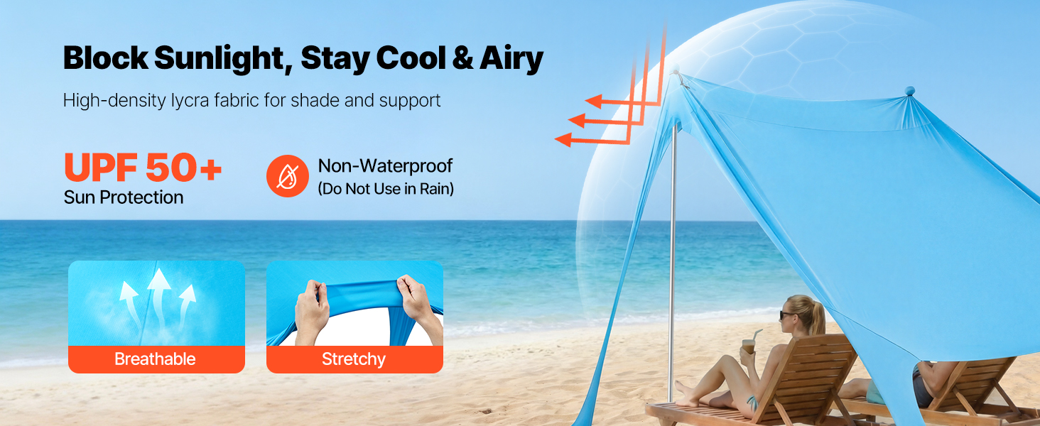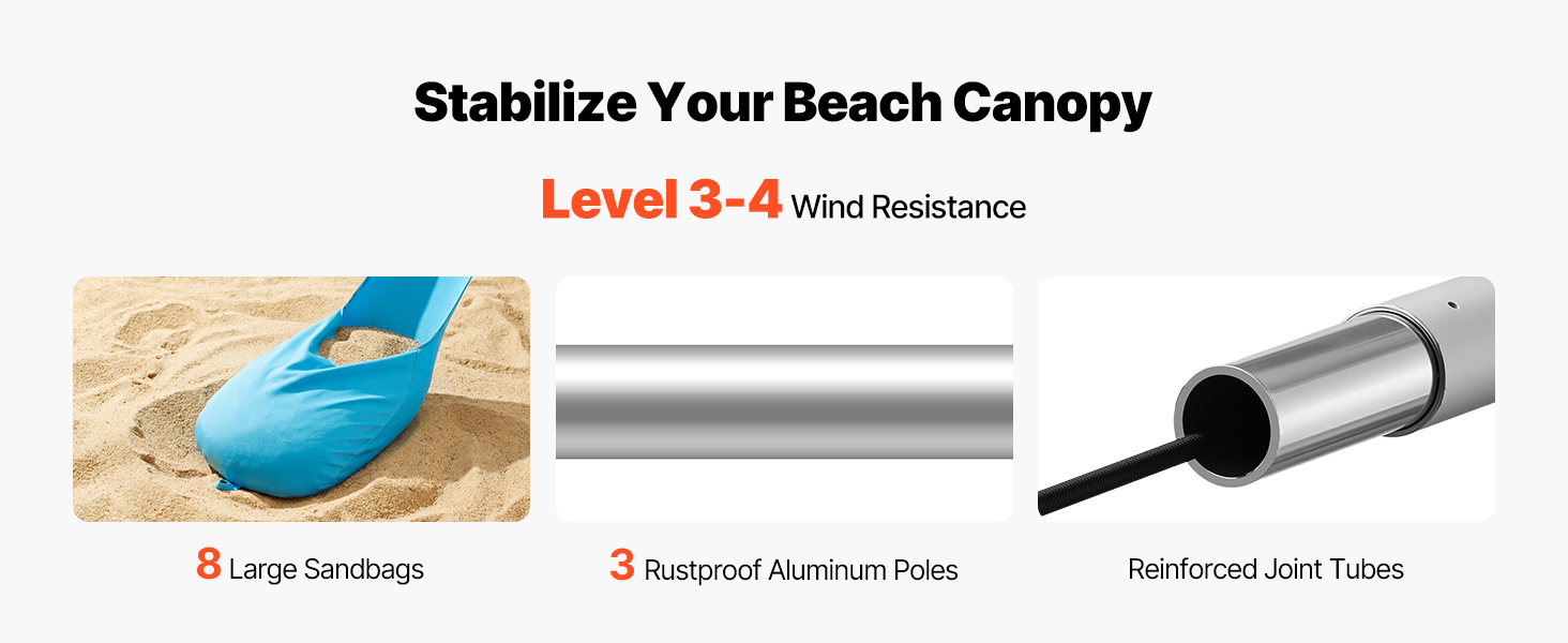 Crafted for reliability, this beach sunshade canopy incorporates durable sandbags, robust aluminum poles, and flexible top cords, forming a sturdy support system. Engineered to endure moderate winds, it minimizes the chances of instability or accidents during breezy weather.