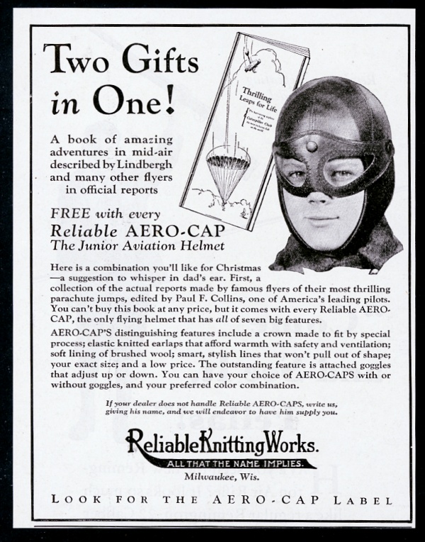 1929 Reliable Aero-Cap kids toy pilot helmet photo vintage print ad
