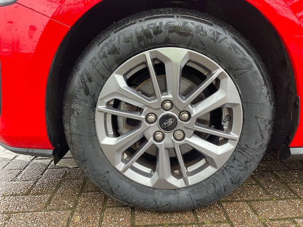 ..4.2'' Colour TFT Ice blue illumination analogue cluster with trip computer, Bluetooth system, Digital clock, Easy fuel capless refuelling system, Eco mode, Ford SYNC 4 Navigation with 13.2'' touchscreen, DAB radio, Emergency Assistance, Apple Carplay & Android Auto, 6 speakers & FordPass Connect, Lane keeping system - lane keeping alert and lane keeping aid, PAS, Rev counter, Selectable drive mode, Service interval indicator, 2 USB ports, Auto headlamps (on/off), Body coloured door handles, Electrically operated front and rear windows with one touch opening and closing, Electrically operated heated power fold door mirrors with puddle lamp with side indicators, Front variable intermittent wipers with electric wash, Full fixed LED headlamps, Grille with chrome surround and horizontal bars, Heated rear window, LED daytime running lamp, LED rear lamps, LED third brake light, Quickclear heated windscreen, Rain sensor, Rear side wing doors, Tailgate wash/wipe, 3 rear headrests, 3 seat bench in 2nd row, Cloth upholstery, Dual zone electronic air temperature control, Height adjustable front headrests, Isofix child seat preparation, Reach + rake adjustable steering column, Single front passenger seat, 3x3 point rear seatbelts, ABS+Electronic Brake force Distribution, Auto hold function, Driver airbag, EDL traction control, Electronic parking brake, Electronic stability control, Front and rear seatbelt reminder, Front inertia reel height adjustable seatbelts with pre-tensioners, Front passenger airbag, Front side airbags, Passenger airbag deactivate switch, Post collision braking, Pre collision assist with autonomous emergency braking and pedestrian/cyclist detection, Remote/power child rear door locks, Side curtain airbags, Three rear inertia reel lap/diagonal seatbelts, Tyre pressure monitoring system, Keyless entry and keyless start, MyKey system, Remote central locking & engine immobiliser, Thatcham alarm with power door dead locks, 16'' 6x2 spoke dark sparkle high gloss finish alloy wheels with mini spare wheel
