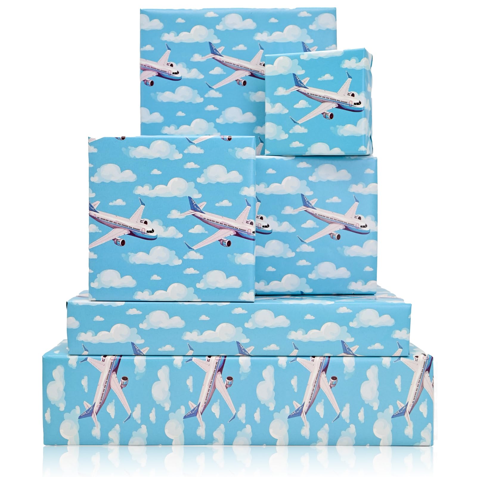 Airplane Wrapping Paper: Our airplane wrapping paper features blue sky with airplane and cloud that exudes charm and eye-catching.
