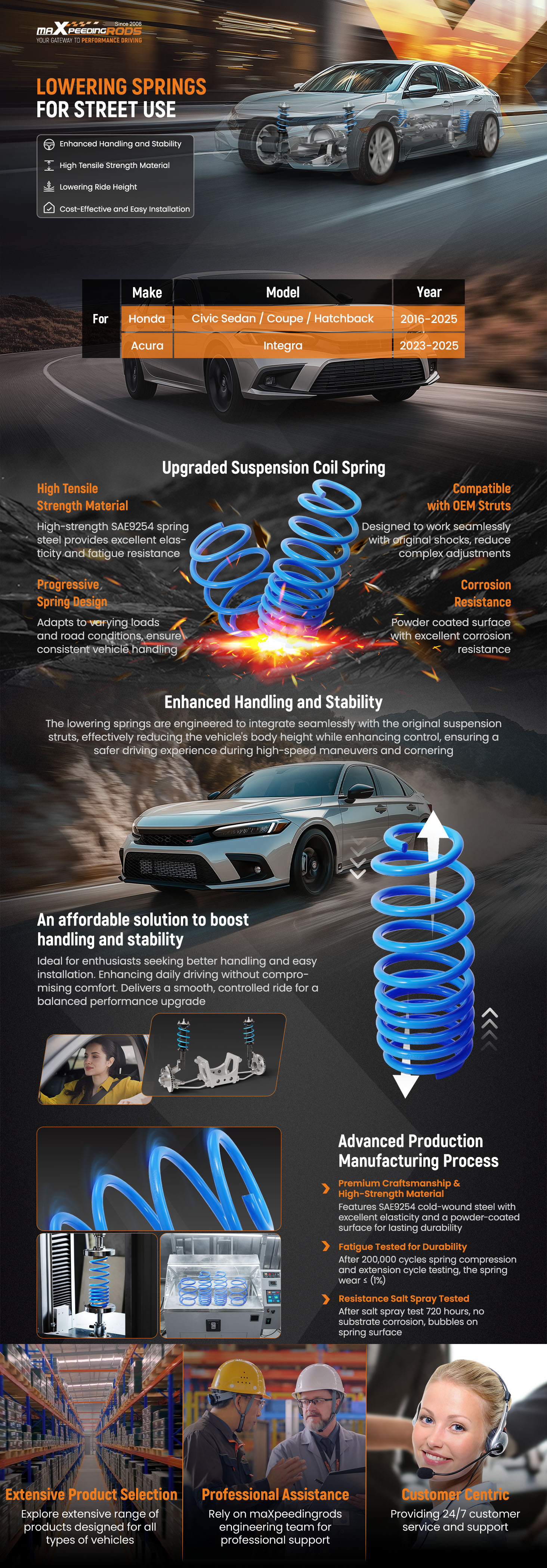 MaXpeedingrods LOWERING SPRINGS KIT FOR Honda Civic 2016-2025 F:2.0" R: 2.0"