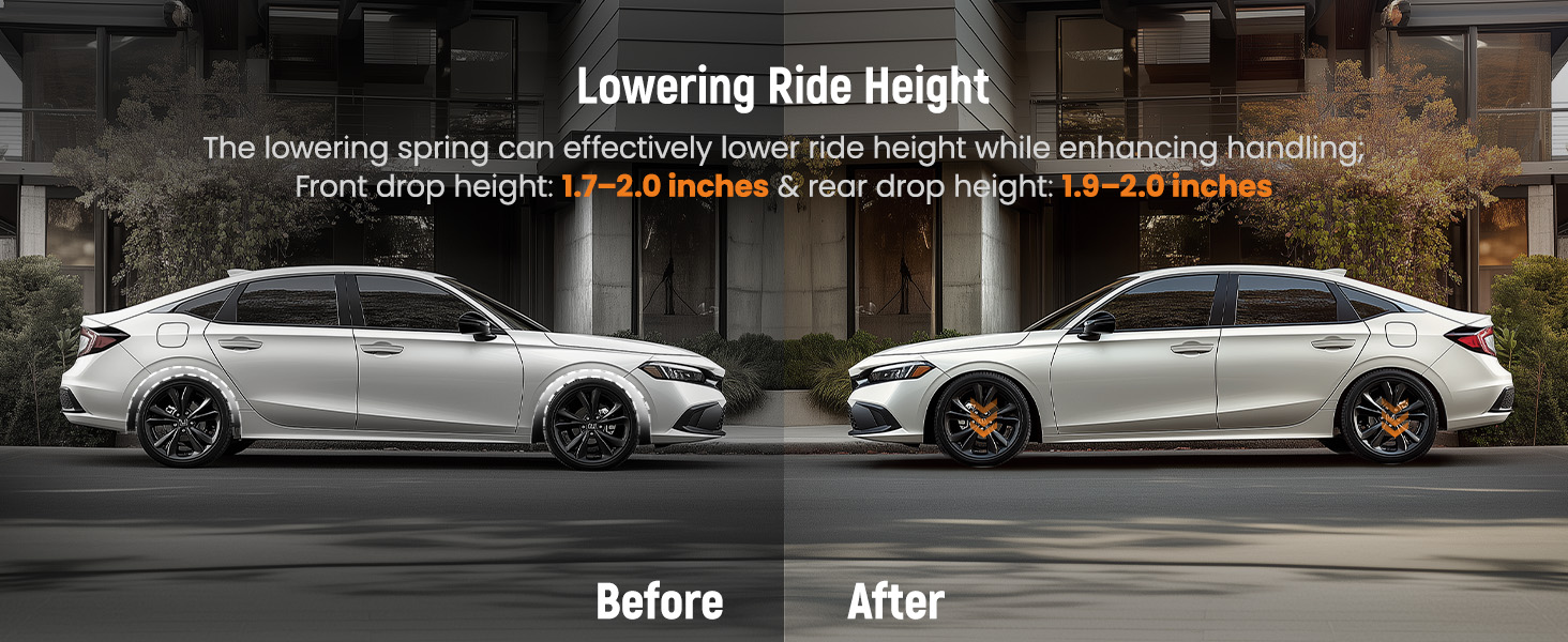 These springs effectively lower your vehicle's center of gravity, improving cornering stability and reducing body roll for a more responsive and controlled driving experience.