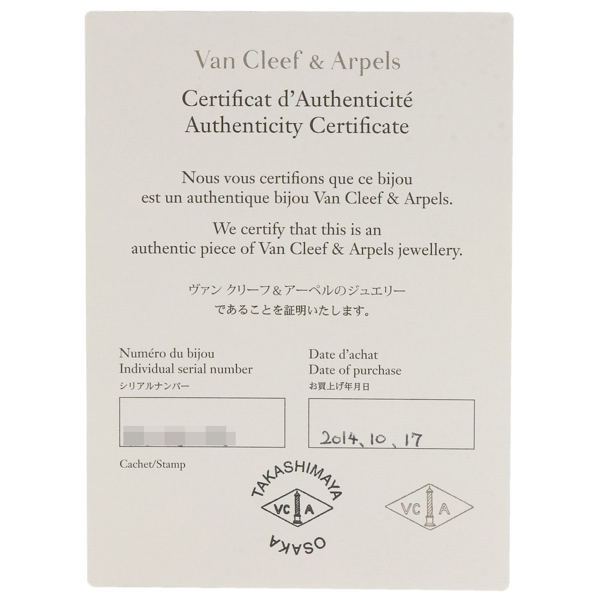 | Accessories | Box / Van Cleef & Arpels Warranty |