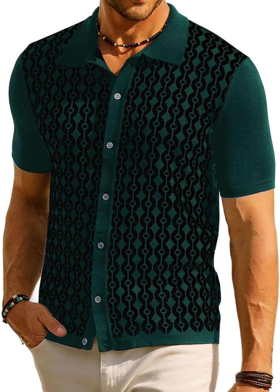 Men's Contrast 70s Vintage Polo Shirts Short Sleeve Knitwear