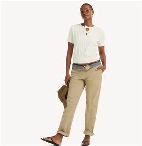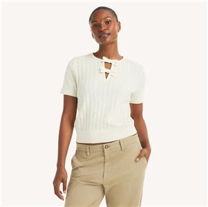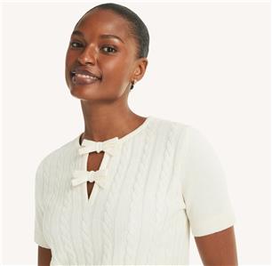 Product Info Featuring a bow tie front and cable-knit design, this short sleeve sweater is the perfect style for weekends on land or at sea. 60% cotton, 40% acrylic. Classic fit. Full length: 22". Bow-tie closure. Short sleeves. Ribbed cuffs and hem. Machine wash. Imported. Item# N5KS0379