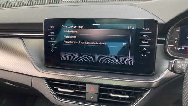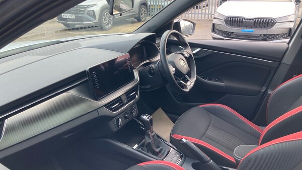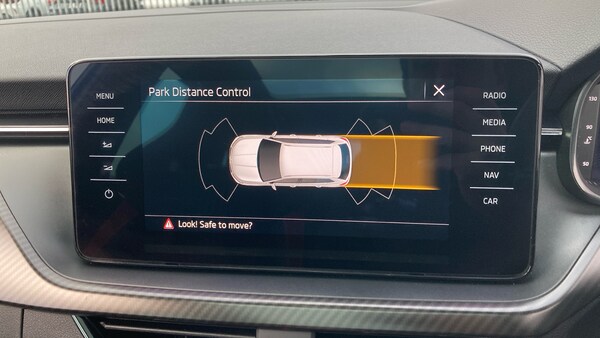 .Textile floor mats, Rear wiper, Heated rear window, Privacy glass, Front and rear electric windows, Rain sensor, Traction control, Rear disc brakes, ESP, Hill hold control, Manual parking brake, Bluetooth system, E-call, PAS, Speed limiter, Front assist system, Service indicator, Gesture control, Amundsen satellite navigation with 9.2"" glass colour touchscreen display, web radio, voice control and traffic sign recognition, Wireless Smartlink for Apple CarPlay (wired for Android Auto), Black door mirrors, Electrically adjustable and heated door mirrors, Dimming rear view mirror with black surround, Chrome air vent surrounds, DAB Digital radio, Auxiliary input socket, Body colour roof spoiler, Body colour bumpers, Chrome grille surround, Black radiator grille, Front sport bumper, Black rear diffuser, Monte carlo plaque, Boot lettering in black, KAMIQ Door sills, Panoramic sunroof with black roof rails, Body colour door handles, Rear side wing doors