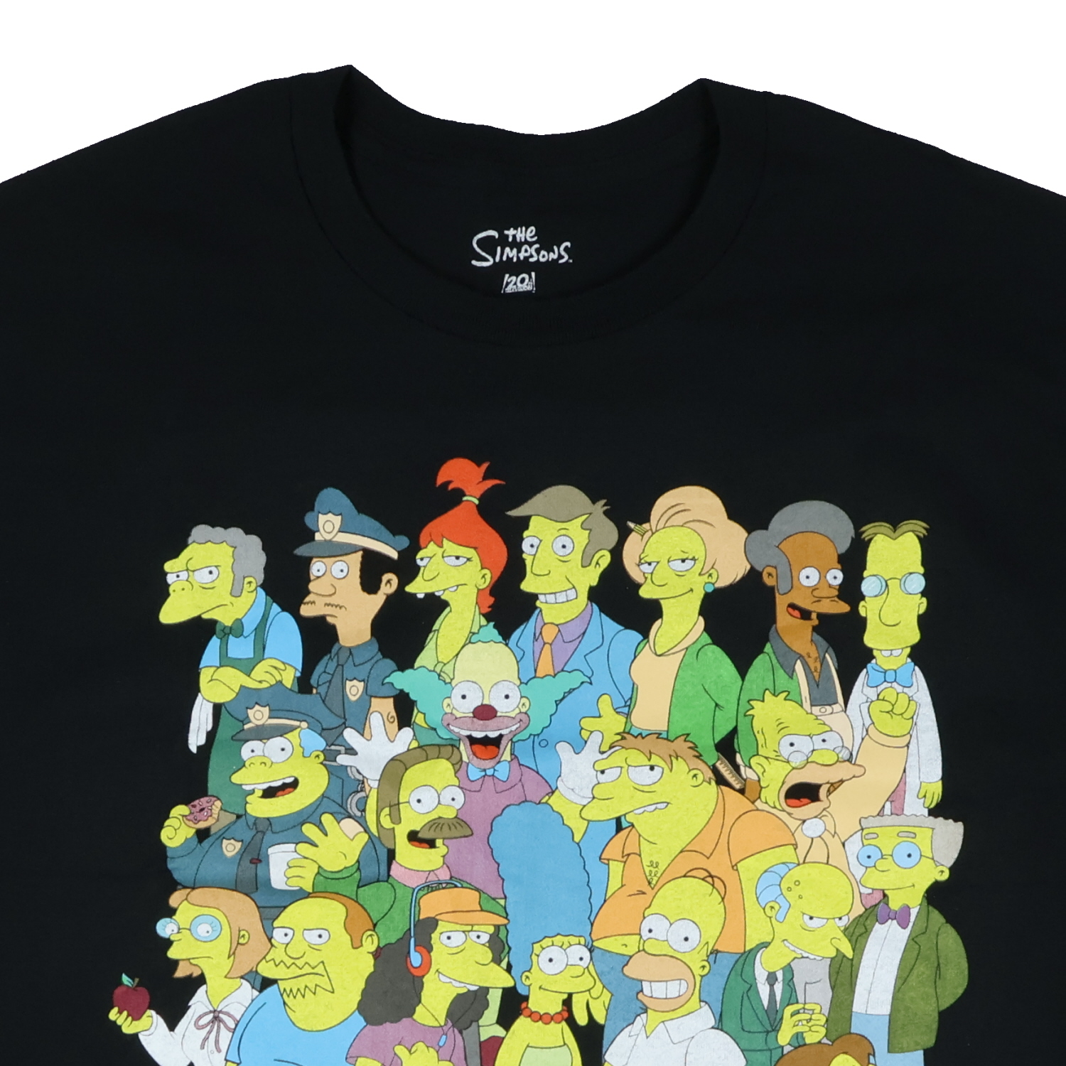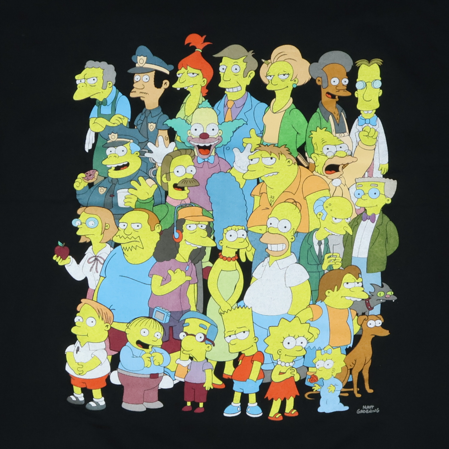 This men's The Simpsons t-shirt brings together a full lineup of familiar characters in one bold design. From the core family—Homer, Marge, Bart, Lisa, and Maggie—to fan favorites like Krusty, Mr. Burns, Milhouse, and even the family pets Snowball and Santa's Little Helper, this group shot captures the spirit of Springfield in a single frame. The artwork sits on a breathable 100% cotton base with a smooth crew neck fit that's easy to wear year-round. Known for its long run on TV and instantly recognizable cast, The Simpsons continues to resonate with fans through decades of storytelling and humor. This tee brings that recognition into everyday style, offering a detailed yet comfortable look that pairs well with casual basics.