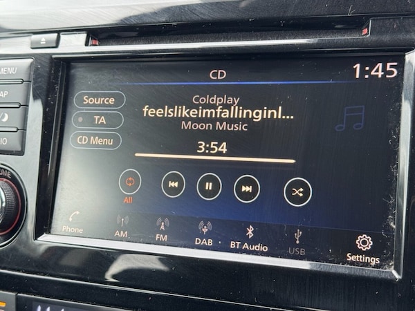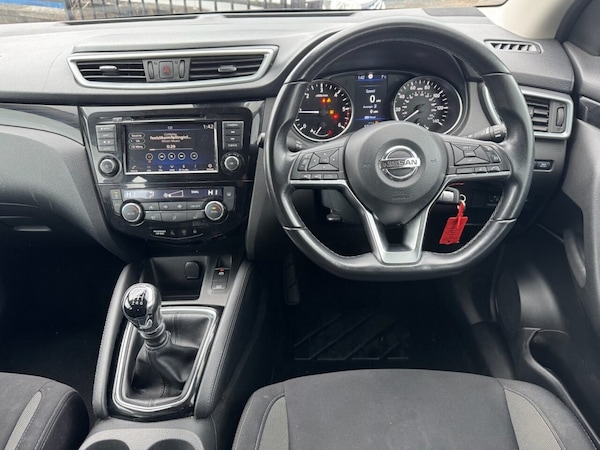 .17in Alloy Wheels, 3 Height Adjustable Rear Headrests, 6 Speakers, 60-40 Split Rear Folding Seats, AM-FM-CD Audio System with DAB, AUX Socket for MP3 Player, Advanced Drive Assist Display - 5in TFT Coloured Screen, Ambient Lighting Centre Console, Auto Wipers, AutoHold Function - Stand Still Assist, Bluetooth with Audio Streaming, Body Coloured Door Mirrors, Body Coloured Handles, Boot Light, Centre Console Storage and Armrest, Chrome Glass Surround, Chrome Interior Door Handles, Cruise Control with Speed Limiter, Daytime Running Lights Dip Function When Turn Signal Applied, Driver Seat Height Adjustment, Driver-Passenger-Side and Curtain Airbags, Drivers Seat with Manual Lumbar Support, Dual Zone Climate Control Air Conditioning, ESP ABS EBD and Brake Assist, Electric Heated Auto-Folding Door Mirrors, Electric Parking Brake, Electric Speed-Sensitive Power Steering, Front 12v Power Sockets x2, Front Fog Lights, Front and Rear Door Pockets with Drink Holders, Front and Rear Electric Windows, Front and Rear Seat Belts with Load Limiter and Pretensioners, Front and Rear Seatbelt Warning, Halogen Headlamps, Height Adjustable Front Head Restraints, Height Adjustable Front Seatbelts, Hill Start Assist, ISOFIX Child Seat Anchoring Points - Rear x2, Intelligent Auto Headlight, Interior Ambient Lighting, LED Daytime Running Lights, Leather D Shaped Steering Wheel, Leather Gear Lever, Leather Knee Pad, Nissan Anti Theft System Immobiliser, Nissan Chassis Controls, Nissan Connect 7in Touchscreen Navigation and Entertainment System, One Touch 4 x Auto Windows with Illuminated Switches, Outside Temperature Sensor, Parcel Shelf - Stow Function Under Luggage Board, Passenger Airbag Deactivation System, Piano Black Dash Trim, Pollen Filter, Puncture Repair Kit, Rear Door Child Locks, Rear Roof Spoiler, Rear View Camera, Rear Wiper with Reverse Link, Remote Audio Control, Remote Central Locking with Superlocking, Seats - Passengers Height Adjustment, Selectable Steering - Normal or Sport, Smart Vision Pack, Smartphone App Integration, Steering Wheel Mounted Audio Controls, TPMS - Tyre Pressure Monitoring System, Thatcham Category 1 Alarm, Tilt and Telescopic Adjustable Steering Wheel, Trip Computer, USB Port, Underbody Vortex Generators