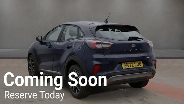 Why This Ford Puma T Wins? This 2022 Ford Puma T Titanium is a stylish and efficient compact SUV that perfectly balances performance with everyday practicality. Powered by a responsive 1.0L Euro 6 petrol hybrid engine, it delivers a smooth drive while keeping fuel costs impressively low. With its elevated driving position and sharp exterior design, the Puma stands out on the road while remaining easy to manoeuvre in town and comfortable on longer journeys. The Titanium trim brings a strong level of comfort and technology, including Fords SYNC 3 Navigation system with Apple CarPlay, Android Auto, and Bluetooth connectivity, keeping you seamlessly connected wherever you go. Rear parking sensors make tight spaces far less stressful, while Electronic Air Temperature Control (EATC) ensures the cabin stays at the perfect temperature year-round. The Driver Assistance Pack adds automatic headlights, boosting convenience and safety in changing light conditions. Your Peace of Mind? - Clear vehicle history check - Optional 3-36-month extendable warranties - Free 12-month AA roadside assistance - Fully prepared to showroom standard with its existing MOT and servicing, and we can organise any further MOT or service enhancements at your request. - Drive Away, Insurance Available - No hidden or extra costs, like admin fees Autotraders 2024 Insights: Top 3 Ford Puma Buyer Priorities: - Fuel efficiency and low running costs - Modern in-car tech and connectivity - Practical boot space in a compact SUV size - The Puma excels in all three areas — delivering up to 52 mpg for excellent economy, offering a tech-rich cabin with SYNC 3 and smartphone integration, and providing clever practicality with a surprisingly spacious boot for a car in this class. Stress-Free Next Steps: - Free Part Exchange Valuation - £0 Deposit Car Finance - Includes free credit checker - Reserve for £99 - Fully refundable.4.2in Colour TFT Analogue Instrument Cluster, Ford SYNC 3 Navigation, 17in Alloy Wheels - 10-Spoke - Absolute Black Machined Finished, Acoustic Laminated Windscreen, Active Grille Shutter, Brighter Upper Door Frame Mouldings, Ecoboost Hybrid Tailgate Badge, Electric Windows - Front and Rear, Front Bumper - Base Facia Body Colour with Lower Part Black, Locking Wheel Nuts, Lower Bodyside Moulding with Chrome Insert, Power-Foldable Heated Door Mirrors with Puddle Lamps, Puma Badge, Quickclear Heated Windscreen, Rear Bumper - Plastic Dual Colour, Rear Spoiler - Body Colour with Centre High Mounted Stop Light, Tailgate - Manual, Tyre Inflation Kit, Automatic Dimming Rear View Mirror, Centre Console - Premium with Openable Stowage Area with USB Connectivity - 2 Cupholders and 12v Power Point, Courtesy Lights - Ambient LED Courtesy Lighting - Single Colour, Drivers Manual 4-Way Seat Adjustment with Manual Lumbar Adjust, Electronic Air Temperature Control - EATC, Ford MegaBox Extended Bootspace, Ford Power Starter Button, Front Floor Mats, Front Seats - Sports Style, Gearshift Knob - Soft Feel, Handbrake - Black Sensico Trimmed with Stitching, Headliner - Deluxe, Instrument Panel - High Level, Passengers Seat - 2-Way, Rear Seats - 2-Way Head Restraint Up-Down, Rear Seats - Second Row 60-40 Folding Seats, Restrain Device Pack, Sensico Steering Wheel - Handbrake and Gear Knob, Soft-feel Gearshift Boot, Automatic Headlights with Rain-Sensing Wipers and Auto High Beam, Front Fog Lights with Cornering lights and LED Rear Lamps, Intelligent Speed Assistance, Power Steering, Projector Headlamps with LED Daytime Running Lights, Selectable Driving Modes - Normal - Eco - Sport - Slippery and Trail, Speed Limiter, Standard Suspension, Blazer Blue, ABS - Anti-lock Braking System, Cruise Control with Intelligent Speed Assist, ESC - Electronic Stability Control and Hill Start Assist, Emergency Brake Warning - Automatic Hazard Warning Lights, First Aid Kit Strap, Lane Keeping Aid with Lane Departure Warning, Post Collision Braking, Pre-Collision Assist with Autonomous Emergency Braking and Pedestrian-Cyclist Detection, Rear Parking Sensors, Remote Central-Double Locking, Thatcham Alarm, Traction Control and Emergency Braking Assistance, Trip-Fuel Computer, Tyre Pressure Monitoring System - TPMS
