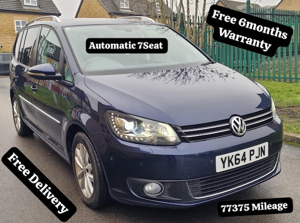 *6months Parts & Labour+ Breakdown Cover*Reserve it online** Fresh Import From Japan,Choice of Two, VW TOURAN LUXURY 7Seater.PETROL DSG AUTO 1.4TFSI FULL ELECTRIC PACK,4X WINDOWS AND FOLDING MIRRORS AC CLIMATE CONTROL,DVD CD SD MP3 BLUETOOTH MUSIC AND PHONE SATNAV REVERSE CAMERA ALLOYS WHEELS WITH GOOD TYRES.*2014 Black 51k & Blue 77k Original mileage.Good Condition in/out.No Major/Deep Dent/Scratches/Marks/Rip/Tear/Hole..Good & Fast Drive,NO FAULT/Smoke/Bang/Noise, any AA RAC Independent Inspection Welcome.Part Exchange Possible.Open 7Days till Late Night,please calll for more information thanks.