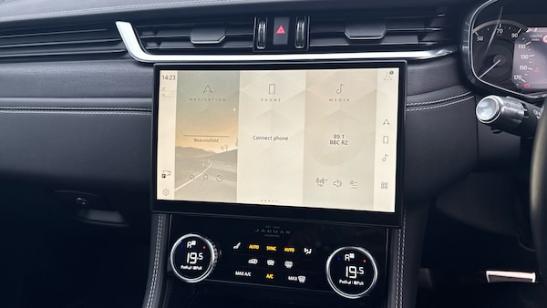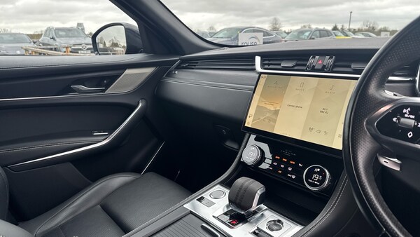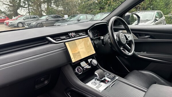 This 2022 Jaguar F PACE 2.0 P250i R Dynamic Black is a superb example of how a premium SUV should blend performance technology and everyday usability. With one owner from new and last serviced in October 2025 it has been carefully maintained and is ready to be enjoyed.Power comes from Jaguar’s refined 2.0 litre petrol engine delivering 250 ps through a smooth automatic gearbox and intelligent all wheel drive. The result is confident year round traction strong mid range performance and reassuring stability in poor conditions while still returning sensible economy for a petrol powered SUV.Technology is a real strength. Satellite Navigation keeps journeys stress free while Apple CarPlay integrates your smartphone seamlessly for music calls and apps. Front and rear parking sensors paired with a rear camera make tight manoeuvres easy and help protect those striking 20 inch black alloy wheels. Cruise control adds relaxation on longer motorway journeys.Comfort levels are excellent. The fixed panoramic sunroof floods the cabin with natural light creating a spacious and airy feel. Black heated leather seats heated steering wheel and heated windscreen ensure winter mornings are effortless while dual zone climate control keeps everyone comfortable all year round. The driving position is spot on offering great visibility and long distance support.Safety is equally well covered with advanced stability systems all wheel drive reassurance and excellent driver assistance features giving confidence whether commuting or travelling with family.Finished in Santorini Black Metallic this R Dynamic Black looks every inch the sporting Jaguar SUV with a purposeful stance and understated presence.Buy with confidence from Vertu Beaconsfield where you benefit from a 3 month complimentary warranty with the option to extend at additional cost. Our experienced team offers a professional transparent buying experience backed by manufacturer trained technicians and the reassurance of a trusted main dealer.A stylish capable and well equipped premium SUV that makes sense every day..Air Conditioning, Climate Control, Metallic Paint, Cruise Control, Satellite Navigation, Alloy Wheels, Leather Seats, Heated Seats, DAB Radio, Bluetooth, Panoramic Roof, Parking Sensors, Heated Front Windscreen, Low Mileage, USB, Sun Roof, Electric Seats, Apple-Android Play, Rear Camera, Electric Opening Tailgate, Auto Lights, Electric Folding Mirrors, Lane Departure, Lane Keeping Assist, Rain Sensors& 4x4, Premium carpet mats, Green tinted glass, Rear wiper, Privacy glass, Variable front intermittent wipers, Rain sensor windscreen wipers, Heated rear window with timer, Heated front windscreen + heated washer jets, Non acoustic front windscreen, Electric windows with one touch open/close and anti trap, ABS, Traction control, DSC - Dynamic Stability Control, Brake pad warning light, Emergency brake assist, Trailer stability assist, Torque vectoring brake, All surface progress control (ASPC), Hill Launch assist, Electric parking brake (EPB)