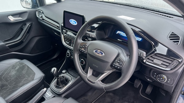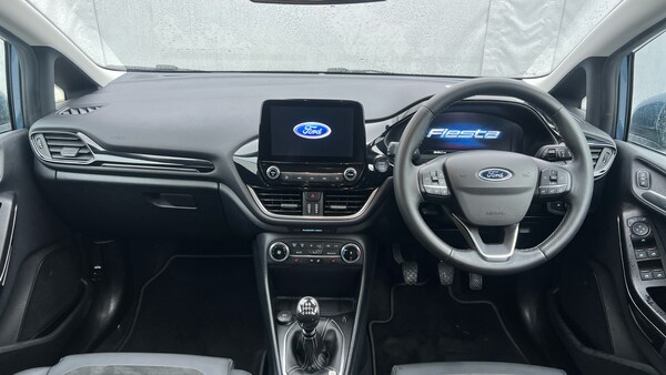 This Chrome Blue Ford Fiesta Hatchback 1.0 EcoBoost Hybrid mHEV 125 Titanium X is a superb example of a stylish, modern, and well-equipped small car. With just 28,481 miles, it has been carefully maintained and is ready to deliver many more miles of enjoyable and efficient driving. The striking Chrome Blue paintwork really stands out, giving the Fiesta a sporty yet refined appearance, perfectly complemented by the upgraded 17-inch alloy wheels.Under the bonnet, the 1.0 EcoBoost mild hybrid (mHEV) engine produces a lively 125bhp, offering an excellent blend of performance and fuel efficiency. It’s responsive around town and confident on the motorway, making it ideal for a wide range of driving needs. Cruise control adds extra comfort on longer journeys, while climate control ensures the cabin remains comfortable in all weather conditions.Inside, the Titanium X trim elevates the driving experience with high-quality materials and advanced technology throughout. The built-in satellite navigation system takes the stress out of unfamiliar journeys, and the impressive SYNC 3 infotainment system provides a smooth, intuitive interface. Apple CarPlay and Android Auto allow seamless smartphone connectivity, giving easy access to navigation, music, calls, and apps while on the move.Parking is made effortless thanks to front and rear parking sensors, providing added confidence in tight spaces. As a five-door hatchback, this Fiesta is both practical and versatile, offering easy access for passengers and a surprisingly spacious boot for everyday use.Overall, this Ford Fiesta Titanium X is a fantastic choice for anyone looking for a premium-feeling hatchback with modern technology, efficient performance, and eye-catching style. It delivers comfort, convenience, and driving enjoyment in equal measure, making it a brilliant all-rounder for both city driving and longer trips..Air Conditioning, Climate Control, Cruise Control, Satellite Navigation, Alloy Wheels, Heated Seats, DAB Radio, Bluetooth, Parking Sensors, Stop Start, Heated Front Windscreen, USB, Park Assist, Keyless Entry-Push Button Start, Apple-Android Play, Auto Lights, Lane Keeping Assist& Rain Sensors, Premium floor mats, Quickclear heated windscreen, Rear wiper, Electric front windows/one touch facility, Rear privacy glass, Electric rear windows, Rain sensing wipers and auto dimming rear view mirror, Electronic stability control with hill start assist, Standard suspension, Electric power steering, Rear view camera, Rear parking distance sensors, Driver alert system, Selectable drive modes (Normal, Sport, Track), Lane keep assist, Speed limiter, Lane keeping aid, Ford easy fuel, Trip computer, 12.3"" Full digital cluster, Ford SYNC 3 Nav with DAB radio, 8"" touch screen, voice control, emergency assist, Apple CarPlay/Android auto, 2x USB, 6 speaker, Ford pass connect