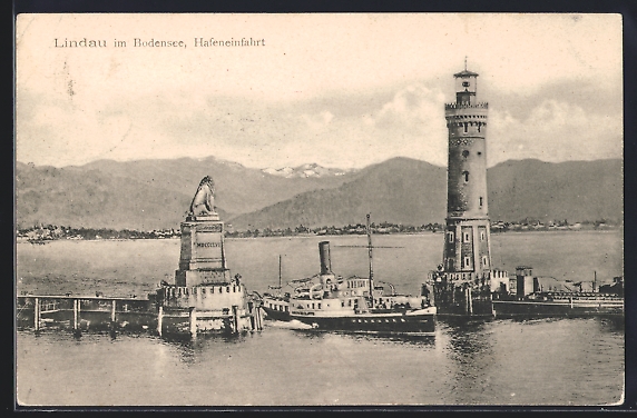 AK Lindau im Bodensee, Hafeneinfahrt mit Dampfer