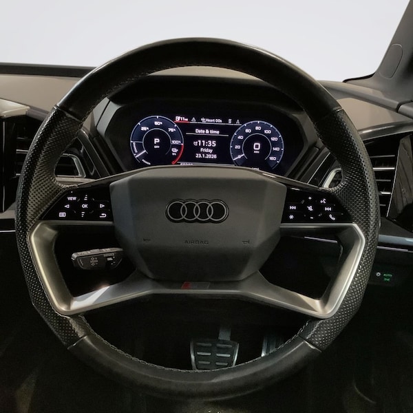 Why This Audi Q4 e-tron S line Wins? This 2023 Audi Q4 e-tron S line is a standout example of Audis forward-thinking electric SUV, owned by just one previous keeper. Powered by a 55 kWh battery, it delivers a smooth, refined and near-silent driving experience with an impressive claimed range of up to 211 miles when new. The S line trim enhances its sporty appeal, while Audis premium build quality ensures a confident and comfortable drive in all conditions. Inside, the cabin reflects modern luxury with 3-zone electronic climate control for personalised comfort and a Bluetooth interface for effortless connectivity on the move. Externally, striking LED headlights and daytime running lights provide excellent visibility and a sharp, contemporary presence on the road. With a generously sized boot, this Q4 e-tron is equally suited to family life, commuting, or longer journeys. Your Peace of Mind? - Clear vehicle history check - Optional 3-36-month extendable warranties - Free 12-month AA roadside assistance - Fully prepared to showroom standard with its existing MOT and servicing, and we can organise any further MOT or service enhancements at your request. - Drive Away, Insurance Available - No hidden or extra costs, like admin fees Autotraders 2024 Insights: Top 3 Audi Q4 Buyer Priorities: - Electric range and charging speed - Premium interior quality - Practical SUV space with low running costs - The Q4 e-tron delivers on all fronts, offering fast 110kW DC rapid charging that can take the battery from empty to 80 percent in around 32 minutes, alongside convenient overnight home charging in approximately 7 hours 30 minutes using a 7kW charger. Combined with Audis renowned interior finish and everyday usability, it is an electric SUV that fits seamlessly into modern life. Stress-Free Next Steps: - Free Part Exchange Valuation - £0 Deposit Car Finance - Includes free credit checker - Reserve for £99 - Fully refundable.110kW DC Charging Capability, 2 USB-C Ports with Charge and Data Functions, Audi Connect Navigation and Infotainment Services Plus (3 Year Subscription From New), Audi Connect Safety and Service - e-call, Audi Smartphone Interface, Audi Sound System, Bluetooth Interface, DAB Digital Radio, MMI Navigation Plus with High Resolution 11.6in Touchscreen Colour Display, 20in Alloy Wheels - 5-Y-Spoke, AC and DC Charging access Point on the Rear Right, Aluminium Roof Rails, Anti Theft Locking Wheel Bolts, Body Coloured Door Mirrors, Contrast Bumpers in Manhattan Grey Paint Finish, Electric Windows - Front, Folding Door Mirrors with Auto-Dimming Function for Both the Drivers and Passengers Side Electrically Folding - Adjustable and Heated with Built-In LED Side Indicators and Kerb-View Function for Passenger Side, Privacy Glass - Dark Tinted Rear Window - Rear Door Windows and Rear Side Windows, S Line Badges on Front Wings, S Line Exterior Styling, Single Frame Grille with a Structured Closed Surface with an Octagonal Shape, Windscreen with Acoustic Glass, 3-Zone Electronic Climate Control, 4-Way Electric Lumbar Support for Front Seats, Aluminium Look Interior Elements, Ambient Lighting Pack, Audi Virtual Cockpit - 10.25in Display, Auto Dimming and Frameless Rear View Mirror, Cloth Headlining in Black, Comfort Auxiliary Air Conditioning, Front Centre Armrest, Front Door Sill Trims with Aluminium Inlay - Illuminated with S Logo, Front Seats Manually Adjustable, Front and Rear Floor Mats, Heated Front Seats, Industry Plug CEE 32 A-230 V Long and Straight, Inlays - Darkened Matt Brushed Aluminium, Keyless Go, Non-Smoking Package, Pedals in Stainless Steel, Power Operated Tailgate, Split Folding Rear Seat Bench - 60-40 or Fully, Steering Wheel - Grips in Perforated Leather - Trim in Chrome Look - S Emblem and Contrast Stitching, Tool Kit, Twin Leather - Front Sport Seats with S Embossed Logo - Black, Mythos Black, 7.2 kW Onboard Charger, Household Plug Type G - GB, LED Headlights with LED Daytime Running Lights, LED Rear Lights, Mode 3 Type 2-AC Charging Cable 22kW, Progressive Steering, Projection Light in the Exterior Mirrors, Sport Suspension, ABS - Anti-Lock Braking System, Active Vehicle Alerting System - AVAS, Anti-Theft Alarm, Audi Drive Select, Audi Pre-Sense Front with Pedestrian and Cyclist Recognition, Camera Based Traffic Sign Recognition, Compact e-tron Charging System, Cruise Control with Speed Limiter, Driver and Front Passenger Airbag with Front Passen