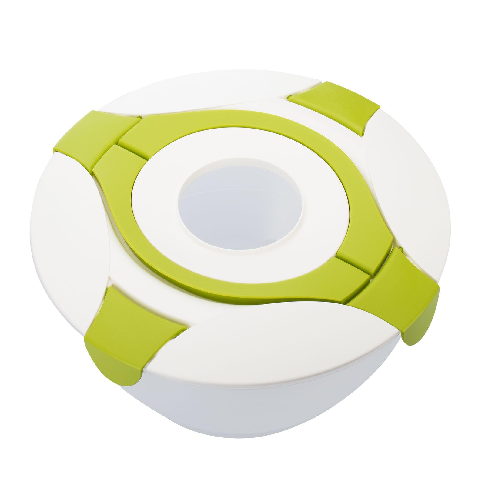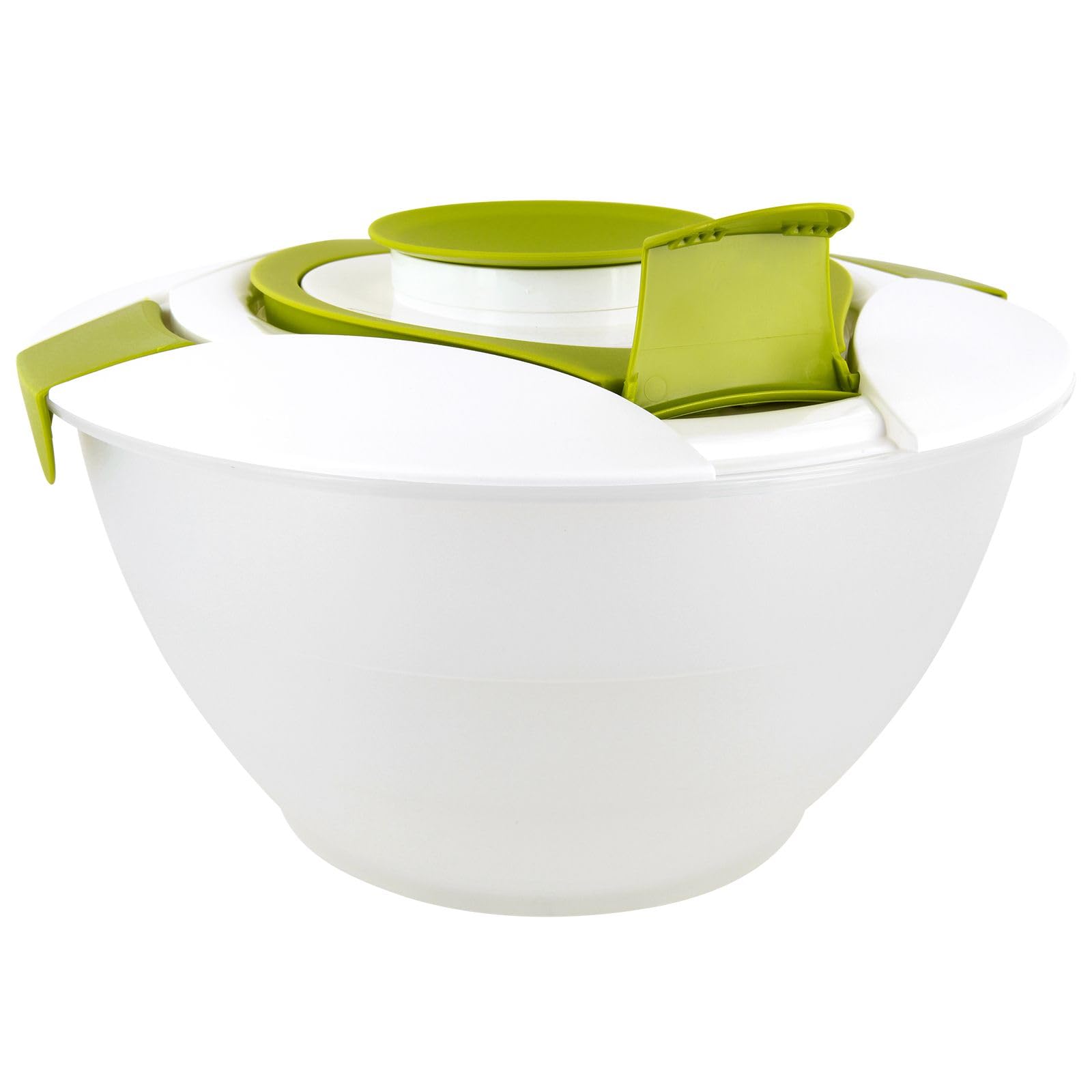 Westmark Insalatiera con manico e contenitore per condimento, Capacità: 6,5 litri, Plastica, Praktika, Trasparente/Bianco/Verde, 2422227A