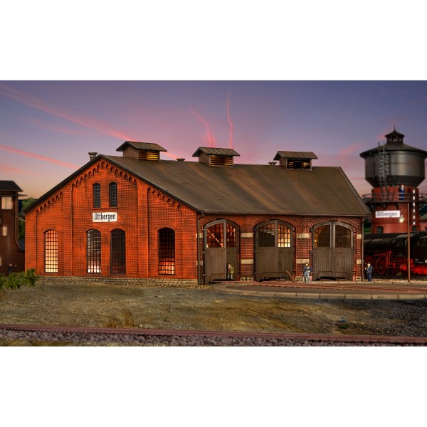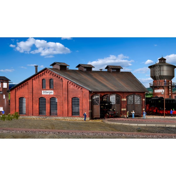 Das Modell basiert auf dem Ringlokschuppen aus Ottbergen, einem bekannten Bahnbetriebswerk (Bw), das als letzte Hochburg der Dampflokomotiven in Deutschland galt. Die historische Anmutung des Baus wurde in diesem maßstabsgetreuen Modell mit Stecksystem überzeugend umgesetzt. Die Architektur entspricht dem Zustand um die Jahrhundertwende und eignet sich besonders für Lokomotiv-Dioramen und klassische Bw-Darstellungen.