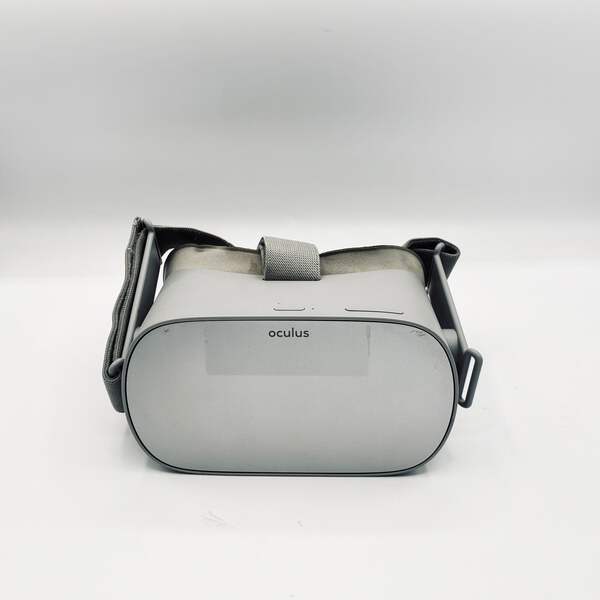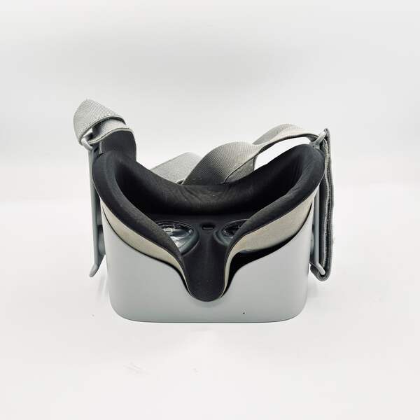 This Oculus Go VR headset has heavy wear and tear, with noticeable stains and an unusual scent. Despite its cosmetic imperfections, the headset is fully functional for its intended purpose.