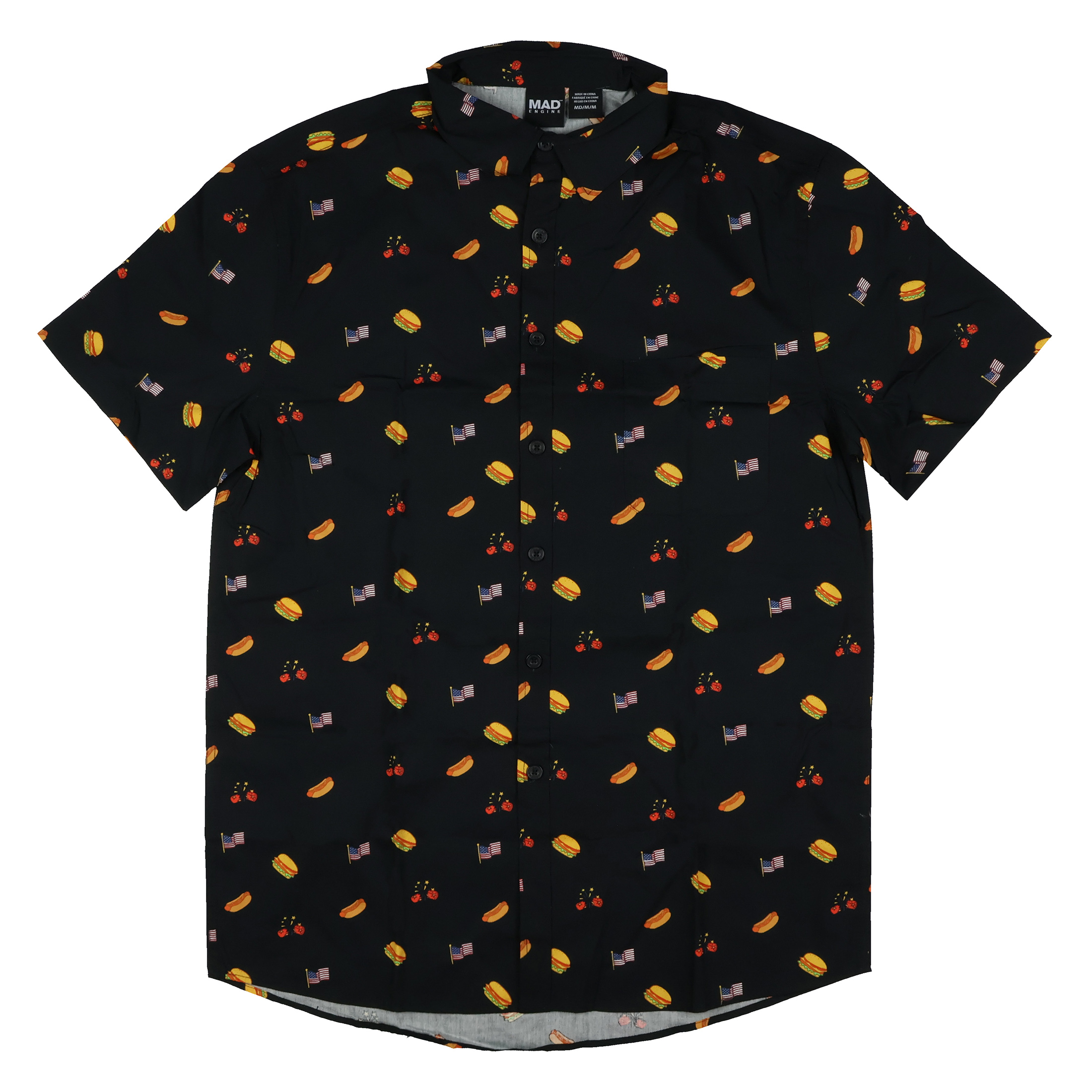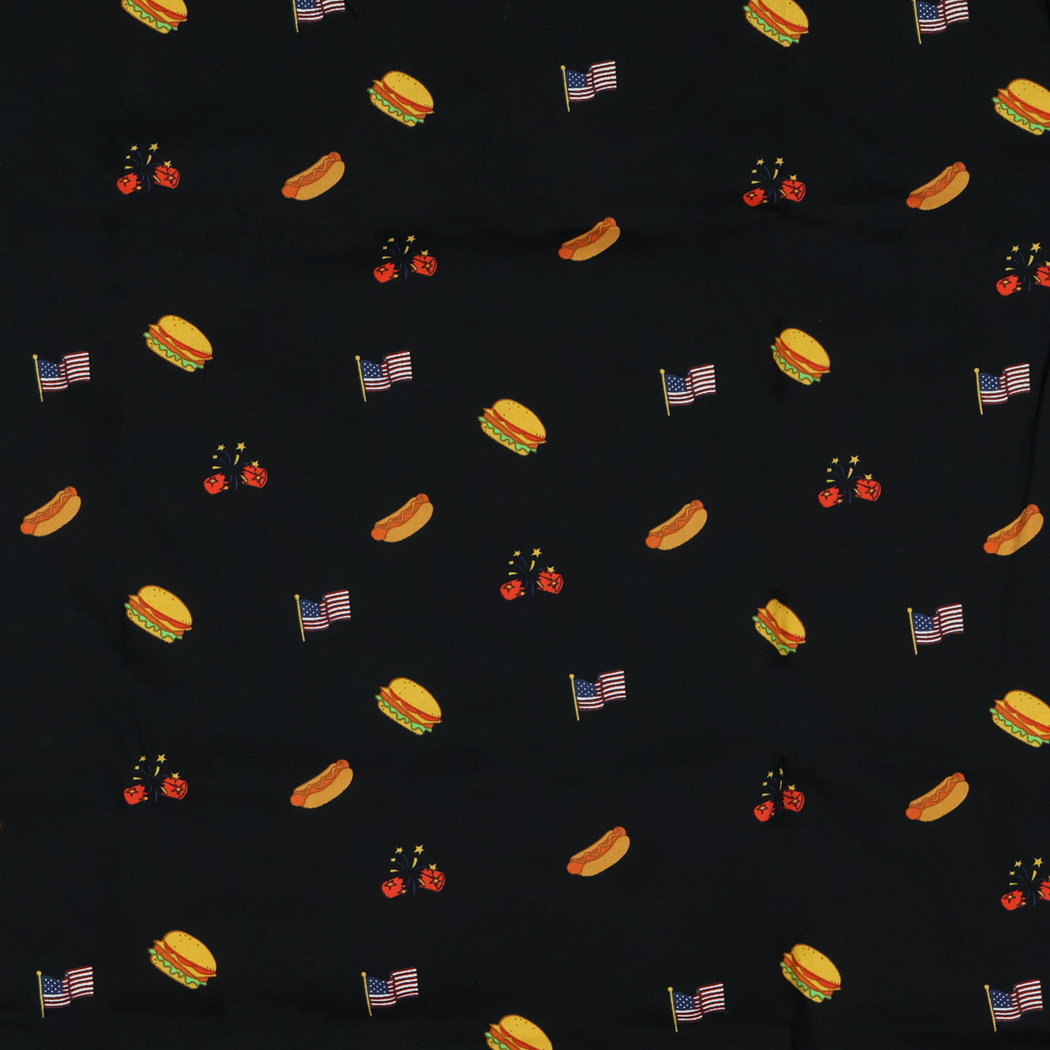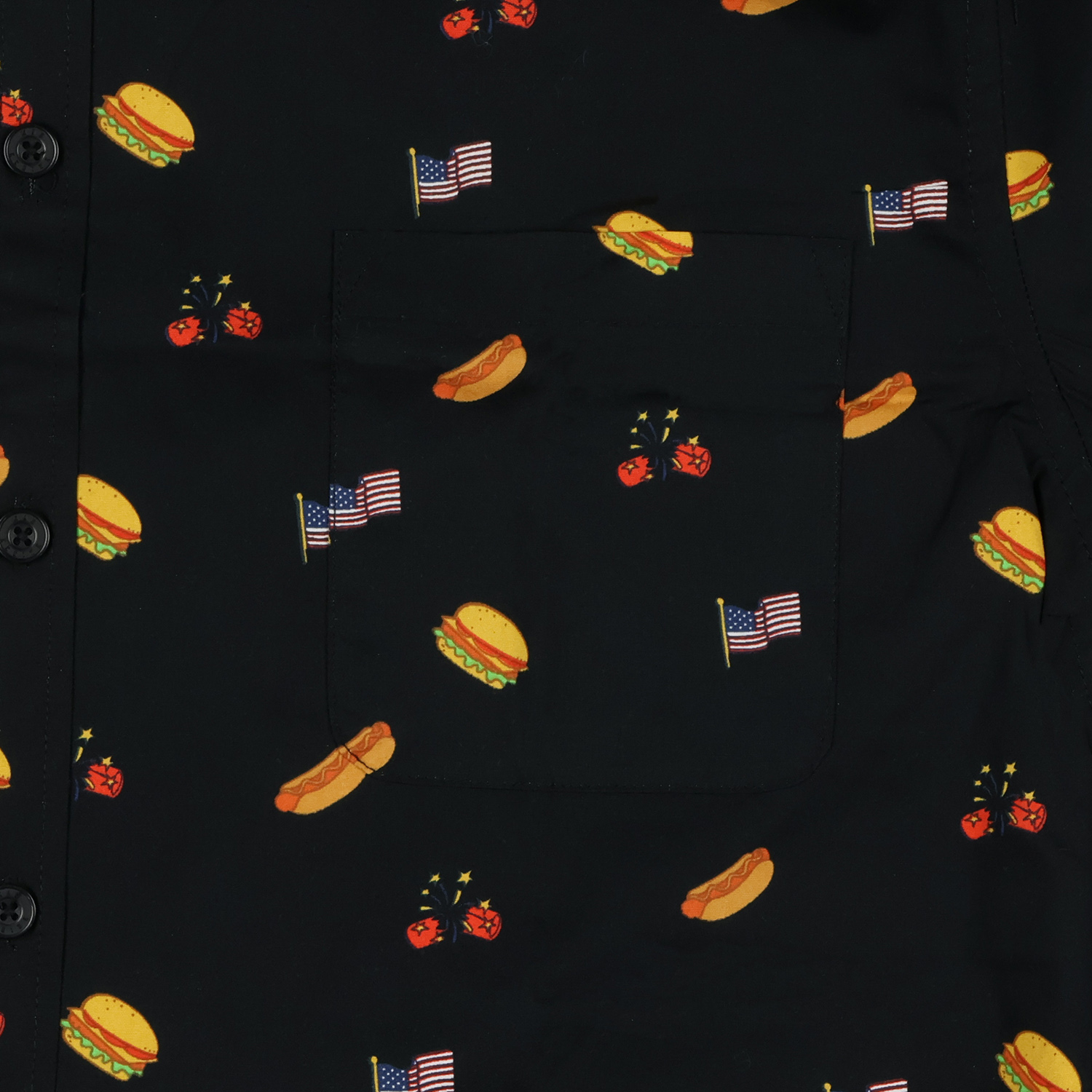 Celebrate summer in style with this bold and fun button-up shirt featuring an eye-catching mix of hamburgers, hot dogs, fireworks, and flags. Whether you’re firing up the grill, heading to a parade, or watching the night sky light up with fireworks, this shirt is the ultimate choice for any warm-weather celebration. The spread collar and relaxed fit make it a comfortable yet stylish option that pairs well with shorts or jeans.
