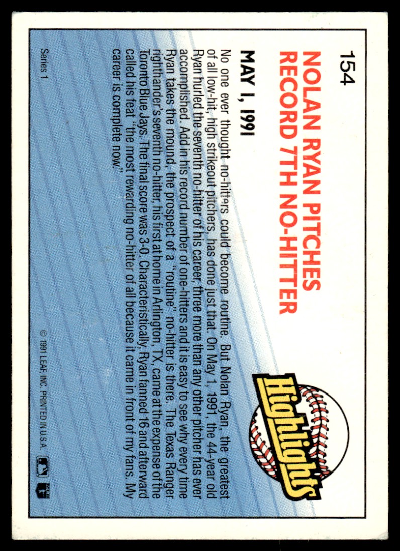 1992 Donruss Nolan Ryan Texas Rangers #154