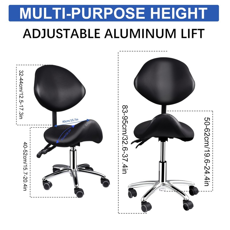Withstand Heavyweights: Our saddle stool with wheels is made with quality materials to withstand up to 400 pounds of weight without compromising on durability or effortless mobility