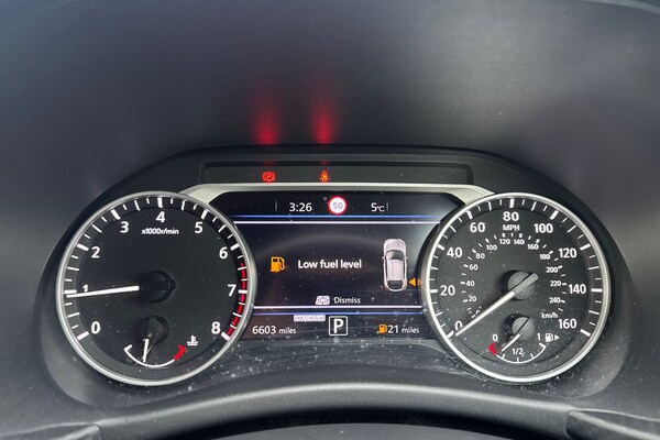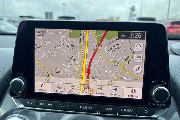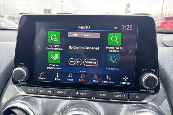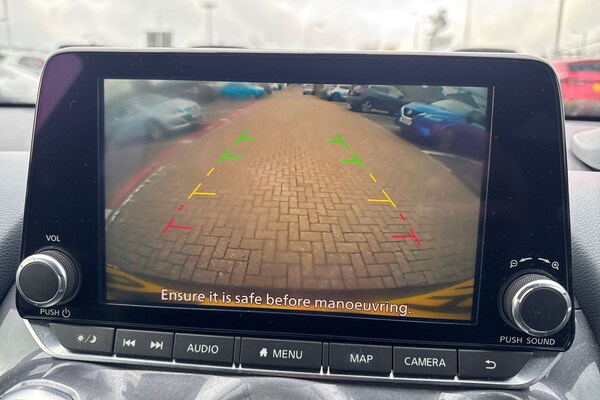 ..7'' full colour TFT screen combimeter, 8'' infotainment colour display with touch screen, Apple CarPlay and Google Android auto, Drive modes select (Eco, normal and sport), Emergency and breakdown call, Front parking sensor, Idle start/stop system, Intelligent lane intervention, Lane departure warning system, Nissan connect nav with TomTom traffic, Nissan connect services and Wifi connection, Outside temperature sensor, Power Steering, Rear parking sensor, Traffic sign recognition, Trip computer, Gasoline particulate filter, 6 speakers, Bluetooth system, USB, Aux-in and 12V socket, DAB Digital radio, Rear console USB port, Auto dimming interior rear view mirror, Automatic hazard signal with emergency stop signal, Body colour bumpers, Body colour door handles, Electrically adjustable door mirrors with integrated indicators, Follow me home headlights, Front and rear electric window with one touch driver window, Heated and auto folding door mirrors, High beam assist, LED daytime running lights, LED headlamps, LED rear fog lamp, LED rear lamps, Rain sensor windscreen wipers, Rear privacy glass, Rear wiper, Three blink turn signal, 3 height adjustable rear headrests, 60/40 split folding rear seat, Automatic climate control, Card holder on driver sunvisor, Cloth upholstery, Driver and passenger sliding and reclining seats, Driver side rear coat hanger, Driver/passenger sunvisors and vanity mirrors, Front and rear cabin lights, Front armrest, Front door pockets with bottle holders, Front head restraints, Front/rear passenger grab handles, Grey synthetic leather kneepad, Height adjustable driver's seat, Internal chrome door handles, Leather gearshift knob, Leather steering wheel, Luggage board, Luggage space lighting, Monoform sporty seats, Multifunction steering wheel, Rear door bottle holders, Steering wheel mounted gearshift paddles, Telescopic steering wheel adjustment, Two cupholders in front centre console, Two rear isofix child seat anchorage points with top tether, Voice recognition switch on steering wheel, Welcome light and console tray ambient lighting, ABS with EBD and brake assist, Active ride control, Active Trace Control, Driver and passenger airbags, Driver and passenger side airbags, Electric handbrake with auto hold function, Electronic Stability Programme (ESP), Front and rear curtain airbags, Height adjustable seatbelts, Hill start assist, Intelligent emergency braking with pedestrian and cyclist recognition, Seatbelt reminder for